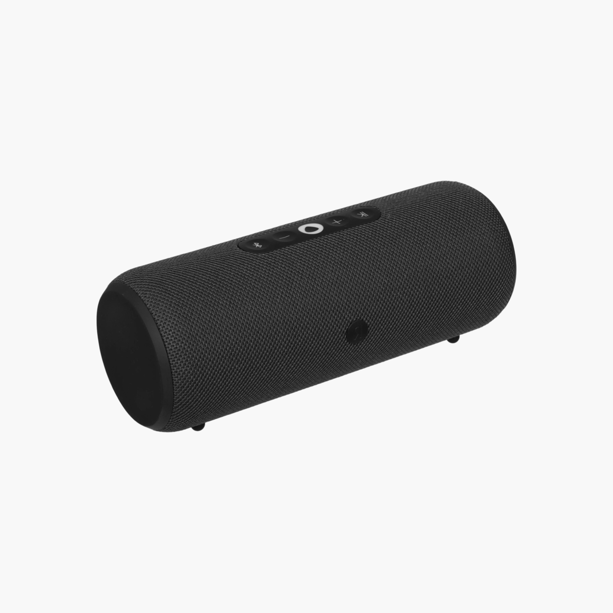 Корпус, обтянутый плотной тканью, защищен по стандарту IP67. Это значит, что ему нипочем воздействие пыли, работа под дождем и даже недолгое погружение в воду на глубину до метра. Цилиндрическая форма позволяет легко поместить колонку в рюкзак или кронштейн для бутылки на велосипеде — самое то для перемещения по городу и поездок на природу.