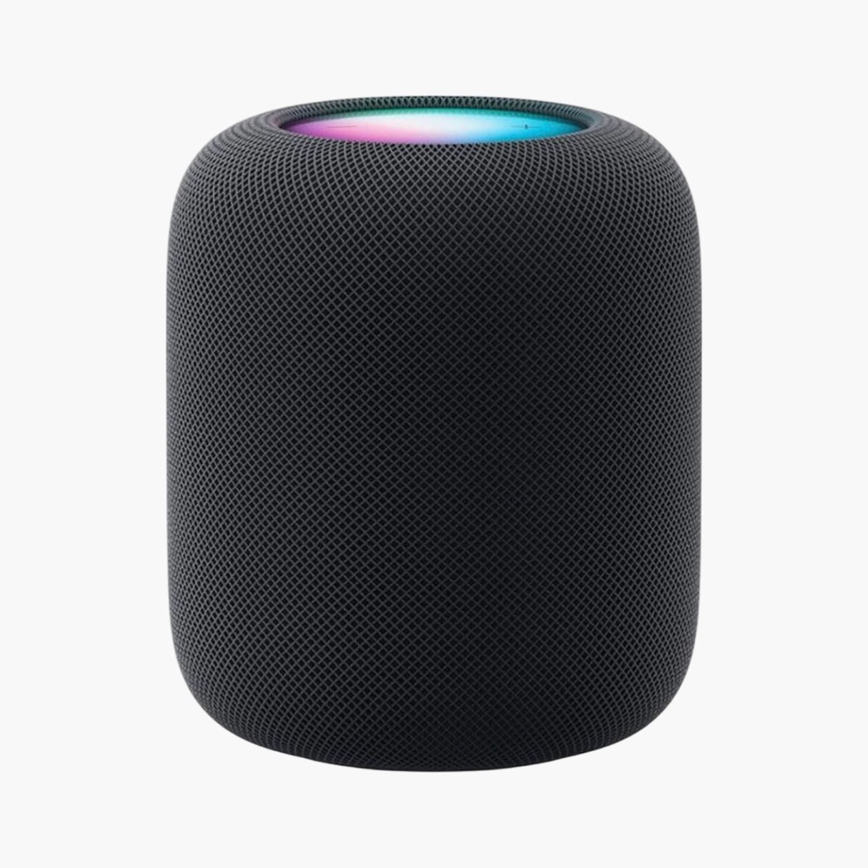Сверху расположен экран, который совмещен с сенсорными кнопками управления и ярко переливается разными цветами, когда колонка, например, слушает, отвечает или подключается к устройствам. Время HomePod 2 не показывает.