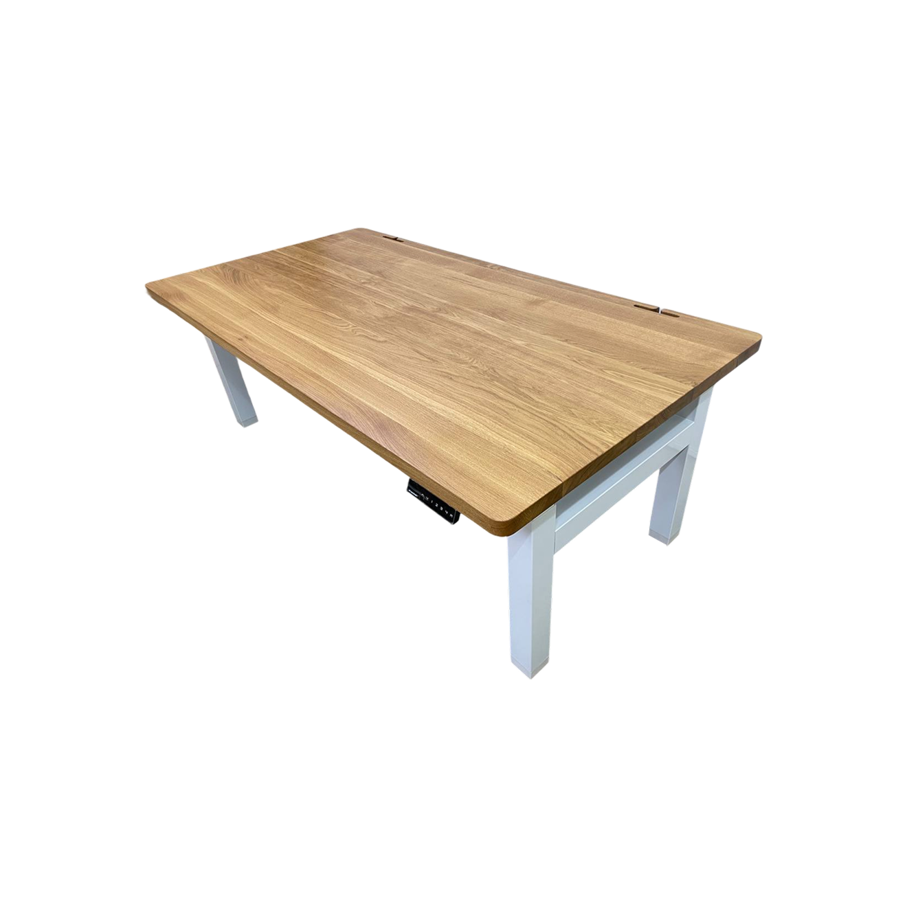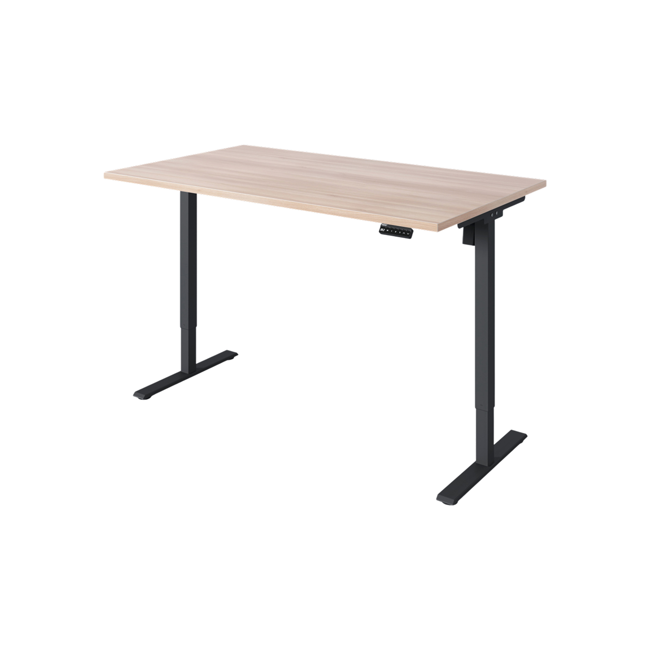 Главная идея модели — гибкость. В зависимости от выбранной столешницы можно получить как компактный офисный стол для ноутбука, так и более массивное решение для сложного сетапа. Доступны базовые размеры — 120 × 68 и 138 × 68 см, а итоговый внешний вид и масса зависят от выбранных материалов. При этом сама рама обеспечивает стабильную работу: одинаковую логику управления, скорость подъема и комфортное переключение между положениями.