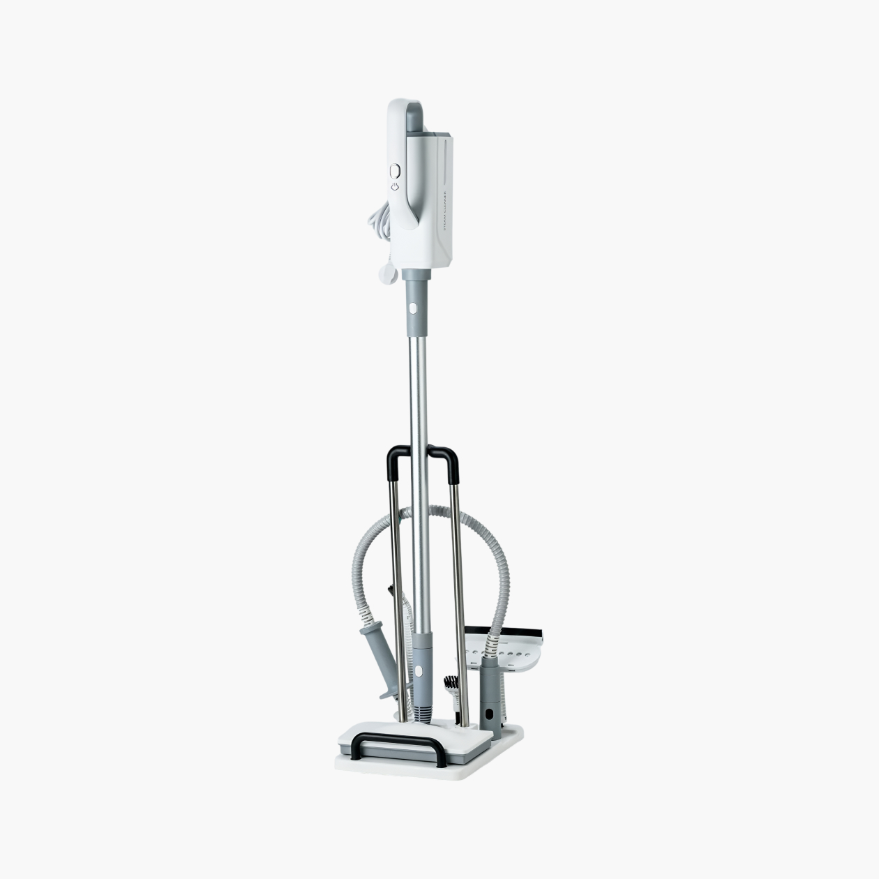 Паровая швабра с подставкой, подачей пара до 32 г/мин и набором насадок для поддержания оптимальной чистоты на кухне — от плиты и столешницы до варочной панели и духовки.