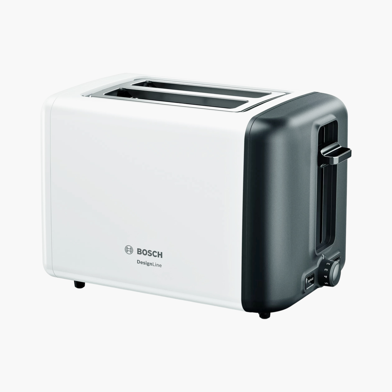 Мощный надежный тостер с равномерной прожаркой и экстраподъемом для маленьких ломтиков. Подогревает выпечку на решетке и автоматически выключается при застревании хлеба
