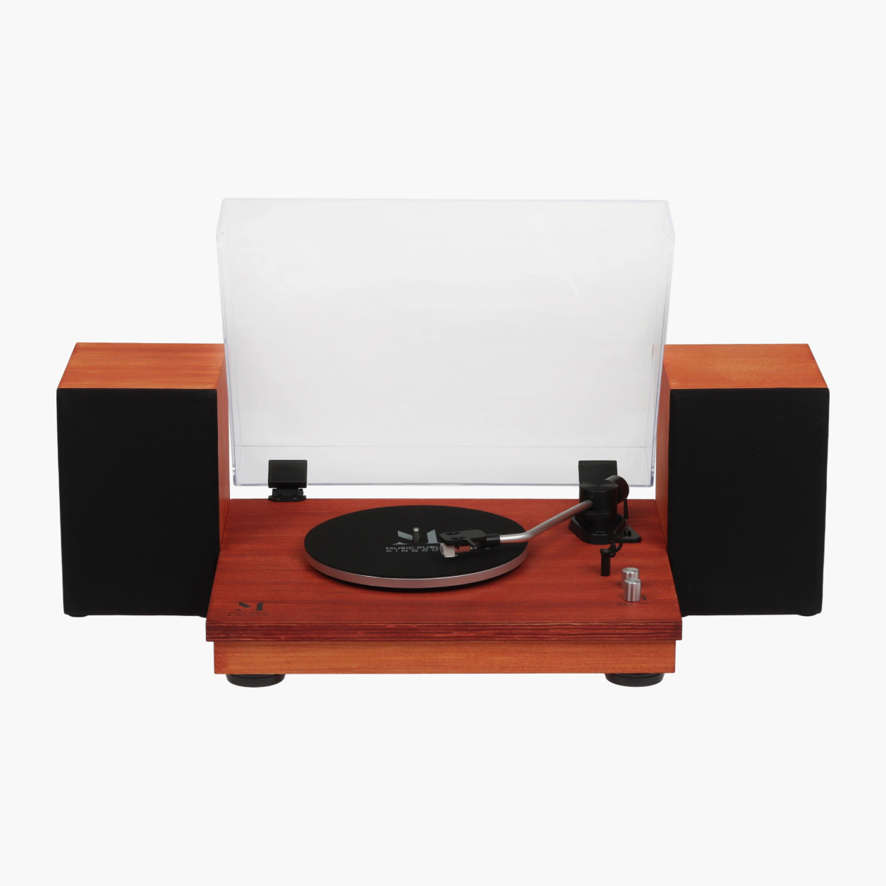 Корпус сделан из тяжелого МДФ и доступен в двух вариантах: матовом черном и цвета вишневого дерева. Привод пассиковый, а вот опорный диск, к сожалению, из пластика.