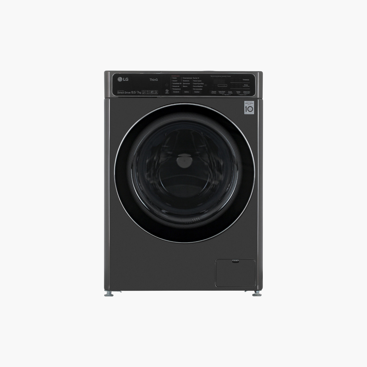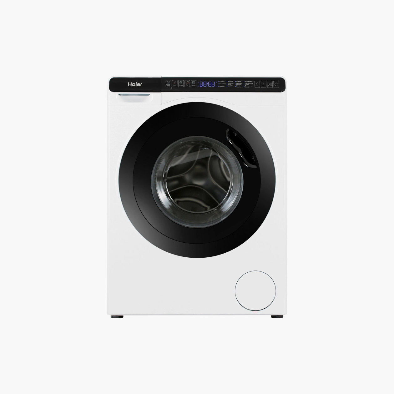 Управление сенсорное. Вся информация о программе отображается на дисплее, барабан оснащен подсветкой. Есть возможность управления через приложение на смартфоне — правда, сейчас эта опция может быть недоступна на территории РФ.