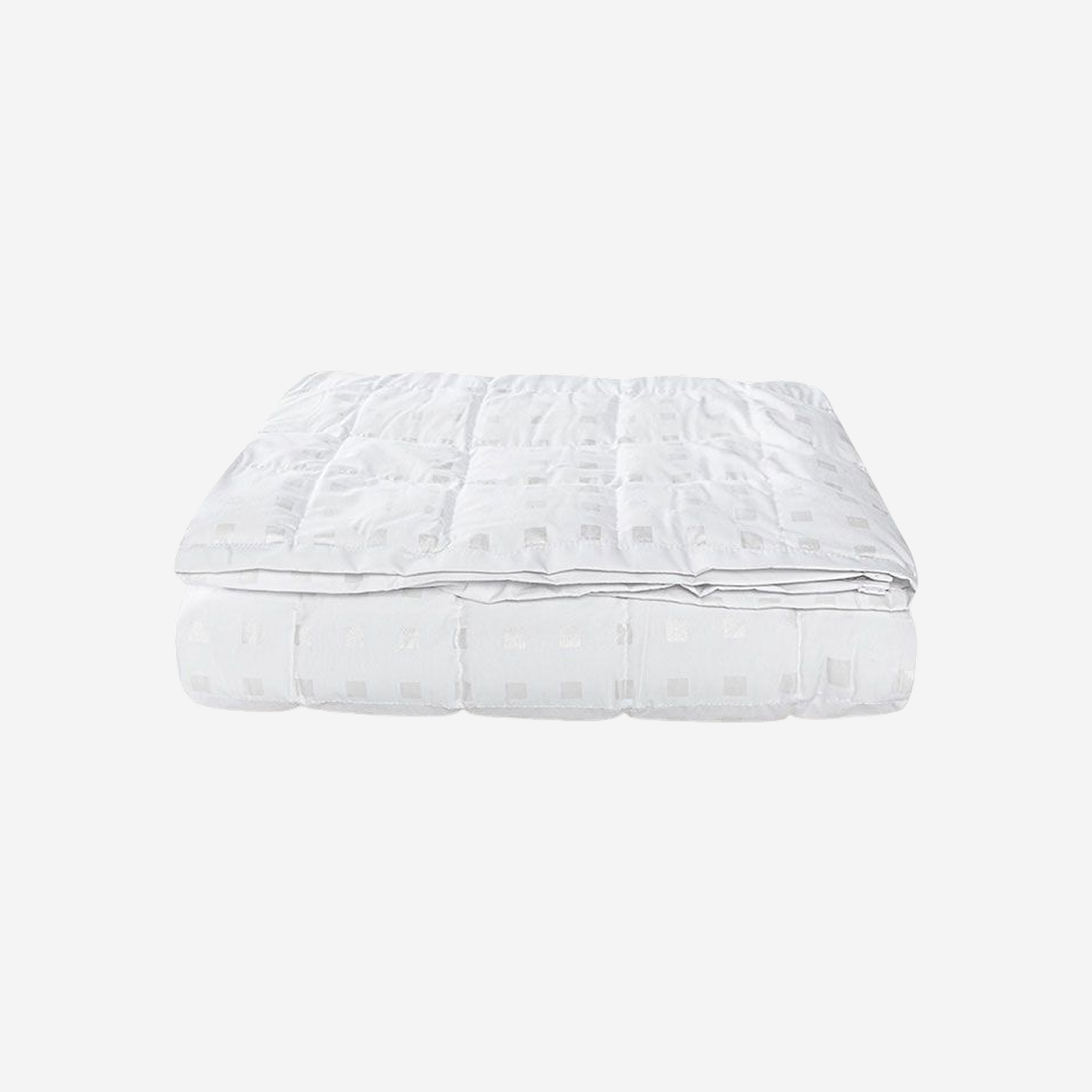 Одеяло летнее, без утеплителя. Чехол из плотного хлопка, размер простроченного квадрата — 10 × 10 см. В комплекте тканевый чехол. Петелек для фиксации пододеяльника нет.