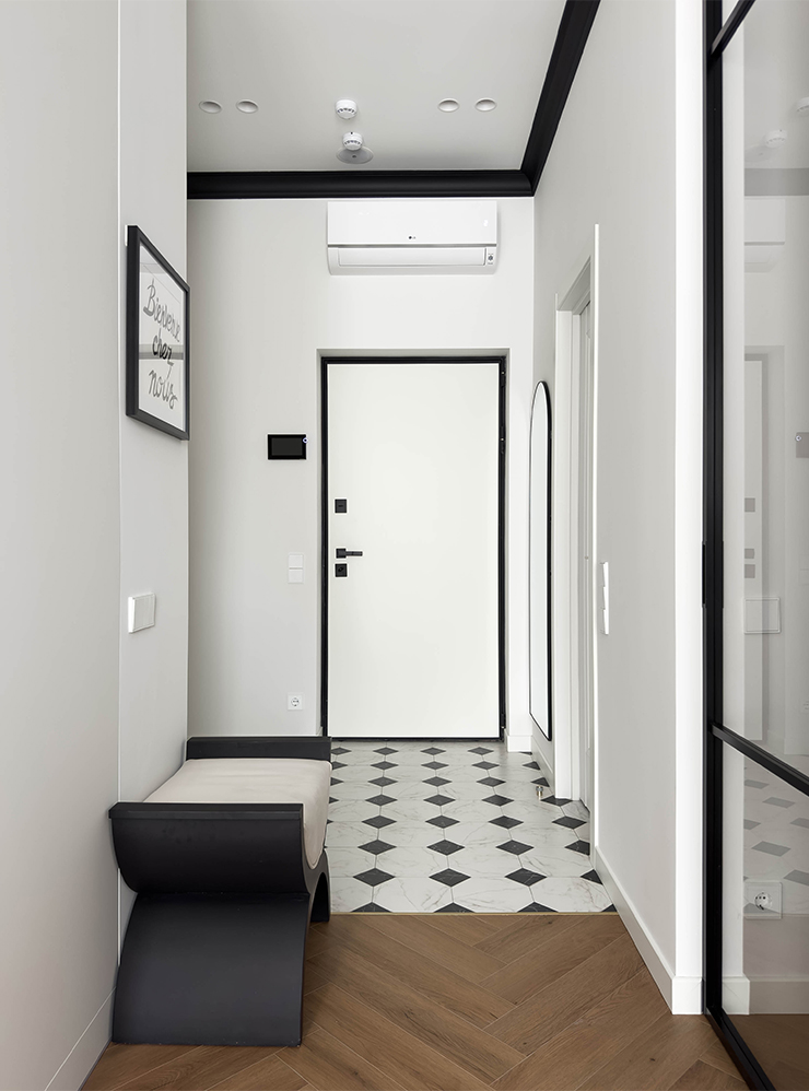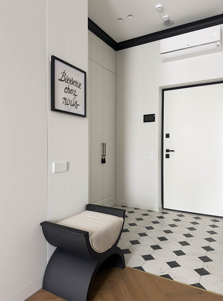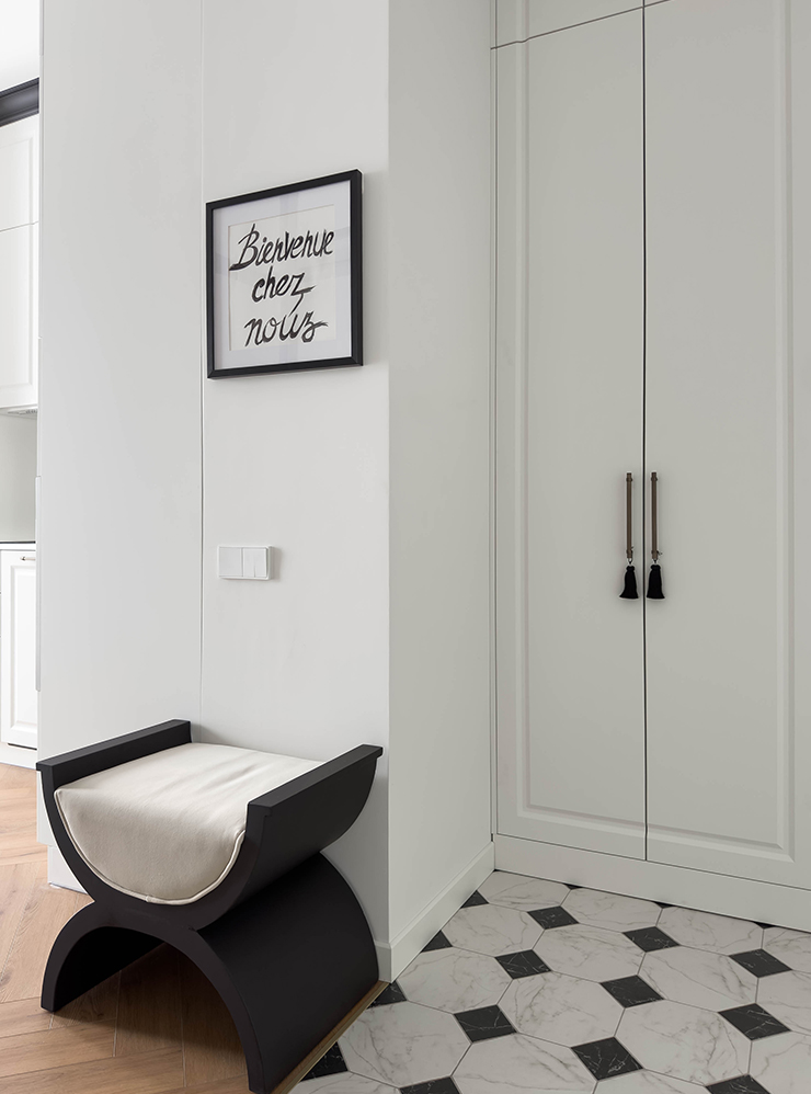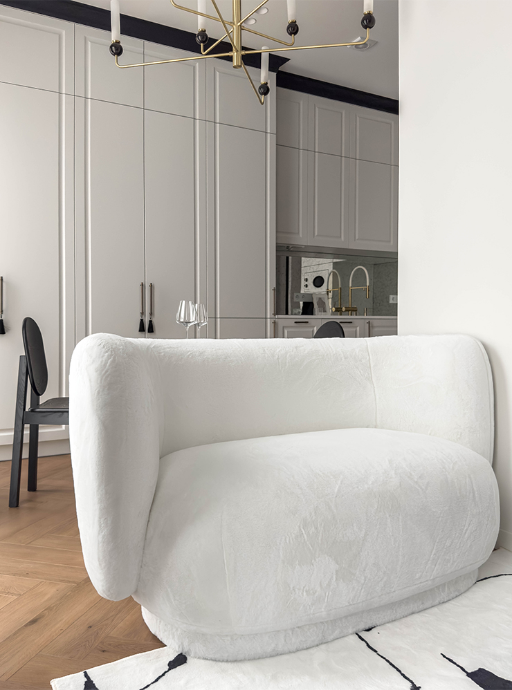 В действительности гармоничная композиция зависит не только от палитры, но и от грамотного распределения цветов, использования фактур и узоров, правильного подбора форм. Черно-белая квартира может выглядеть уютно и роскошно. На примере студии для долгосрочной аренды разберем, как это реализовать.