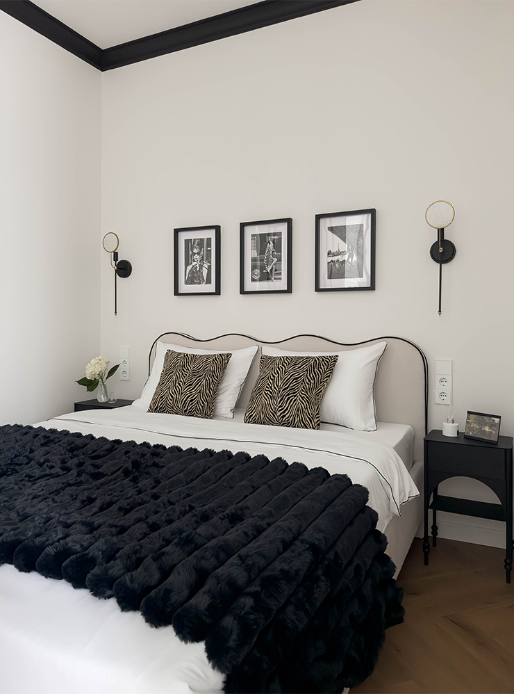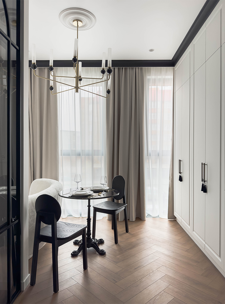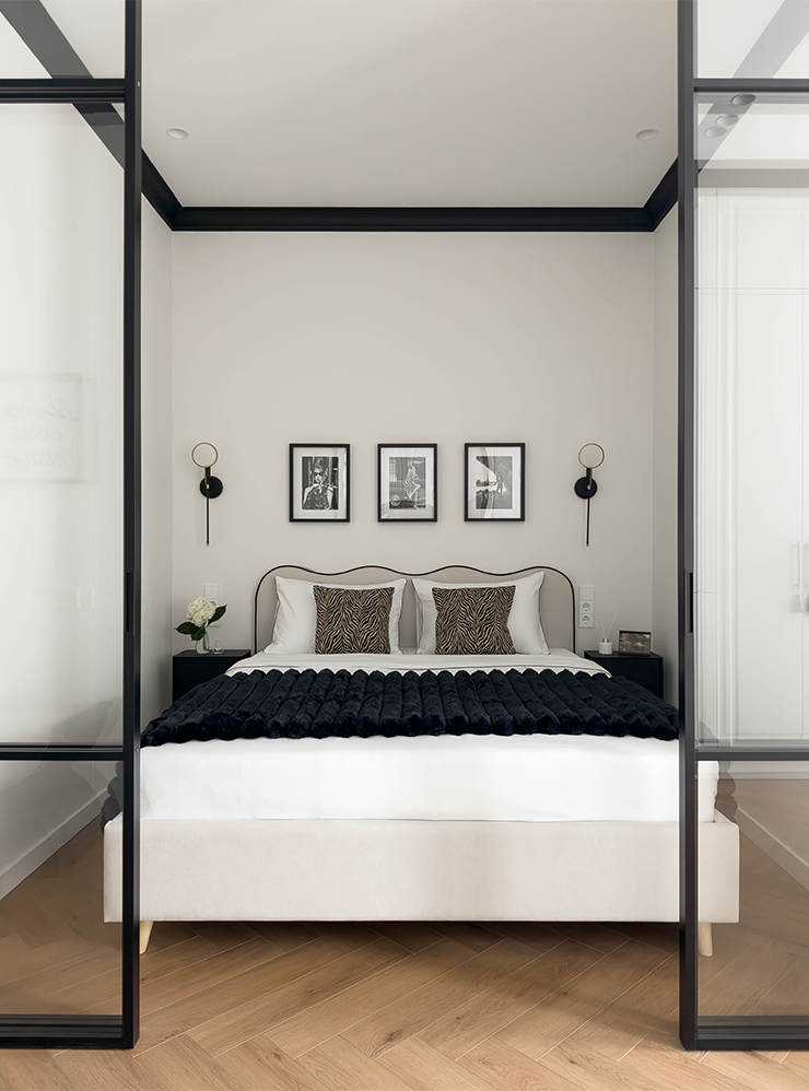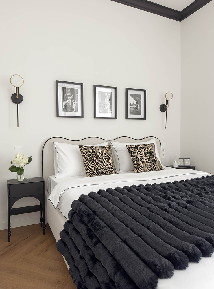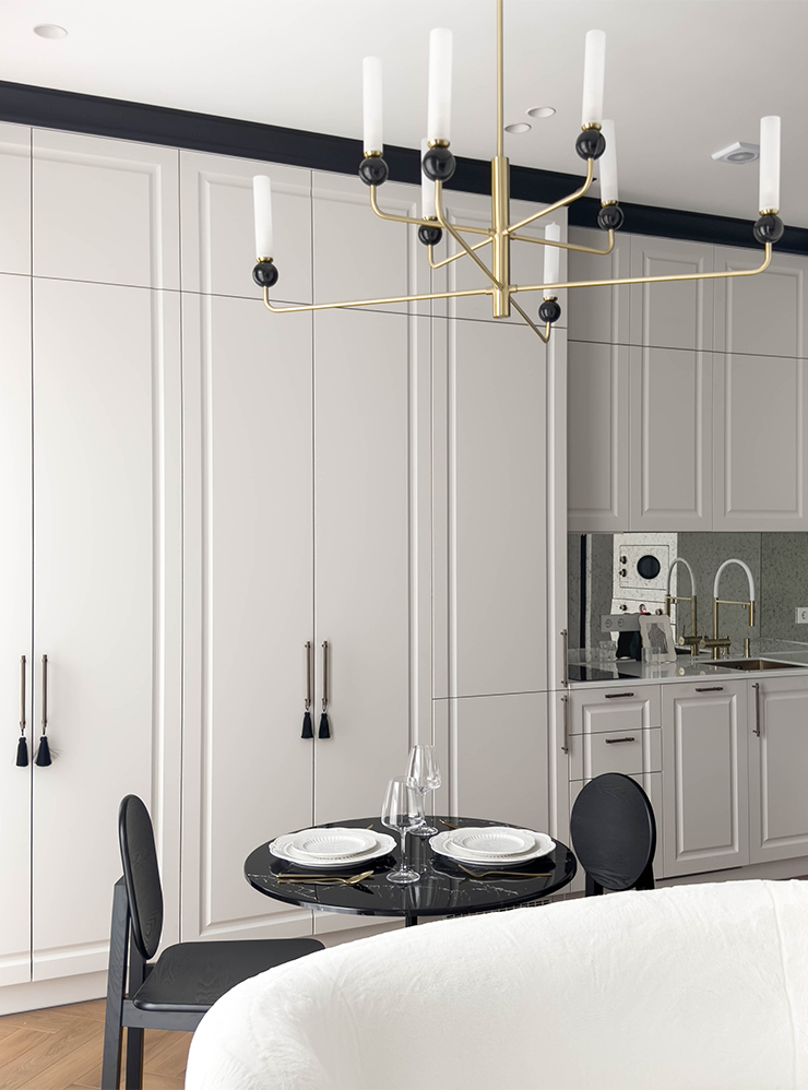 В действительности гармоничная композиция зависит не только от палитры, но и от грамотного распределения цветов, использования фактур и узоров, правильного подбора форм. Черно-белая квартира может выглядеть уютно и роскошно. На примере студии для долгосрочной аренды разберем, как это реализовать.