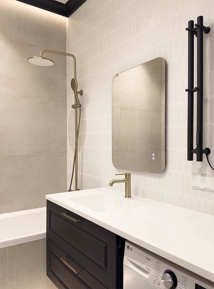 Дизайн квартиры создавали с учетом того, что это будет квартира под долгосрочную аренду, поэтому использовали качественные и стойкие материалы, чтобы не переделывать ремонт после каждого арендатора.