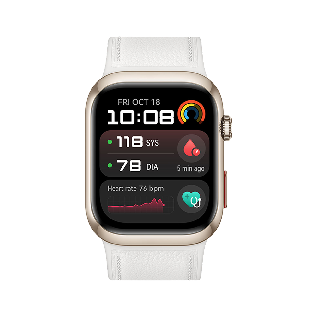 Huawei Watch D2 — часы с полноценным измерением давления благодаря встроенной надувной манжете. Замеры проводятся классическим методом без калибровки, доступен суточный мониторинг с автоматическими измерениями днем и ночью. Также поддерживаются сертифицированная ЭКГ, круглосуточный пульс, сатурация, анализ сна, стресс и температура кожи. Показатели сохраняются в приложении Huawei Health.