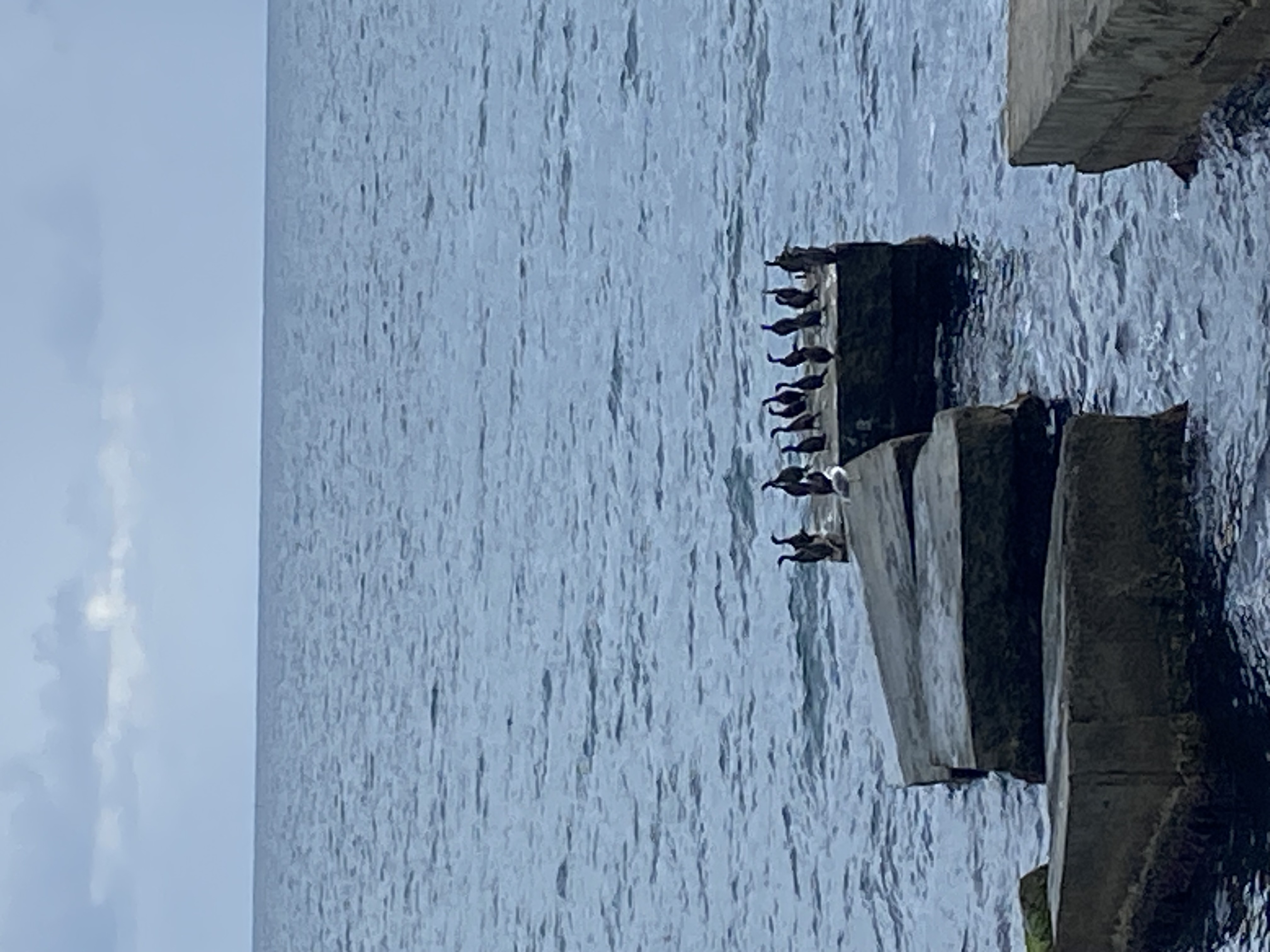 Поплавали, со слов спасателя, t воды 18-19 градусов. При заходе бодрит, но расслабишься и можно долго плавать. К концу купания распогодилось. Пошли налево от пляжа изучать берег. Очень живописно! Прямо на берегу эллинги для катеров-лодок, зачастую в них живут, пристраивают что-то наверху. В общем, алуштинский Шанхай. Рядом таунхаусы, наверх ведут тропы… прошли далеко. По дороге видели, как у дома собирают виноград, попросила продать, парень дал так две грозди. Сладкий! Вообще весь отпуск покупали разный виноград, чаще на улице, и всегда был отличный, цена 150-250 за кг.