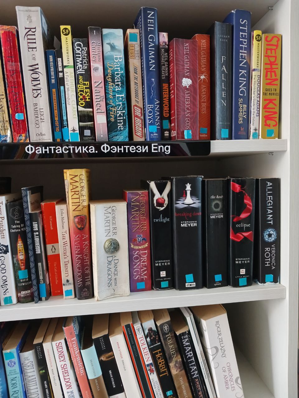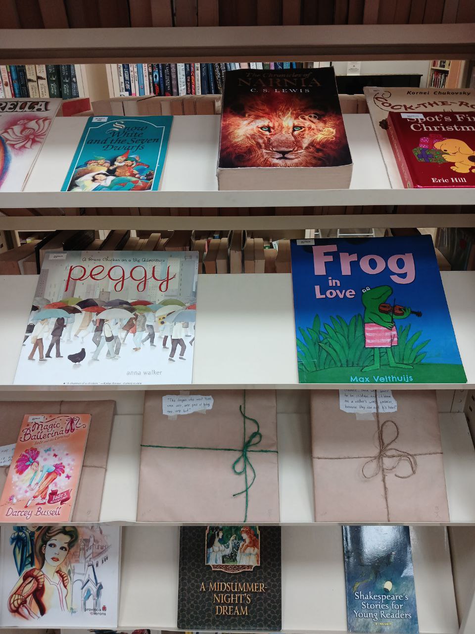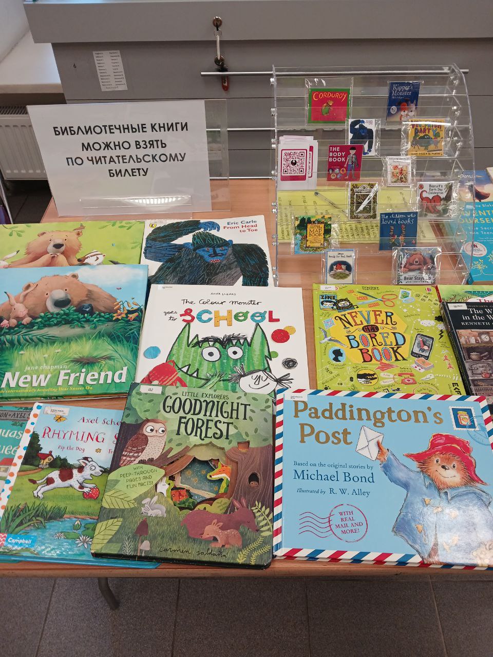 В некоторых библиотеках книг на английском нет, в некоторых есть одна—две полки. Иногда книги расположены в неожиданных местах, например, у пола — лучше уточнять их наличие у сотрудников библиотеки.