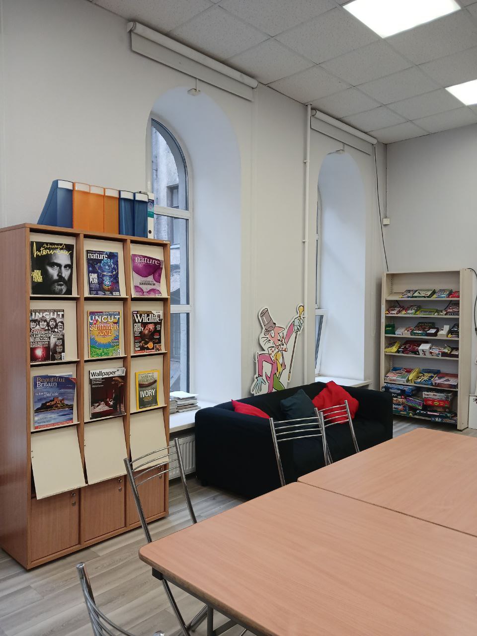 Интересная особенность — в библиотеке много англоязычных журналов. Научные журналы, об изучении языка, по популярной психологии, о музыке, моде и политике — выбор приятно впечатляет. Журналы есть даже за текущий год! Их можно читать и разбирать и для подготовки к международным экзаменам на знание языка. Ну, и чтоб в метро пафосно выглядеть…