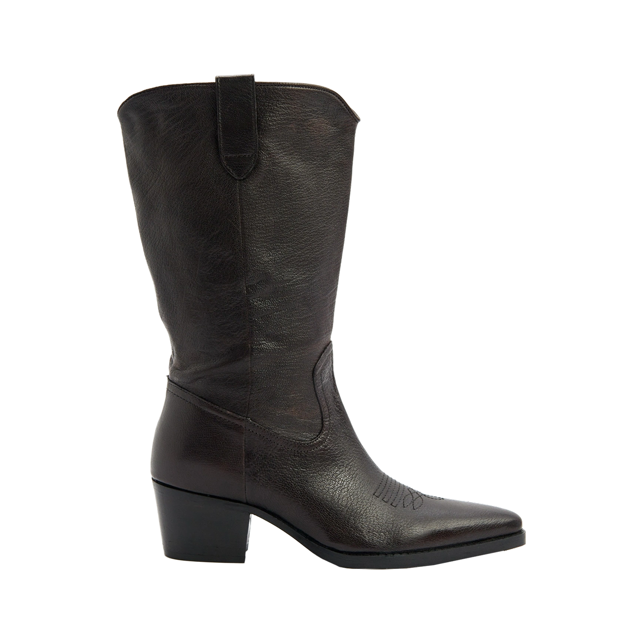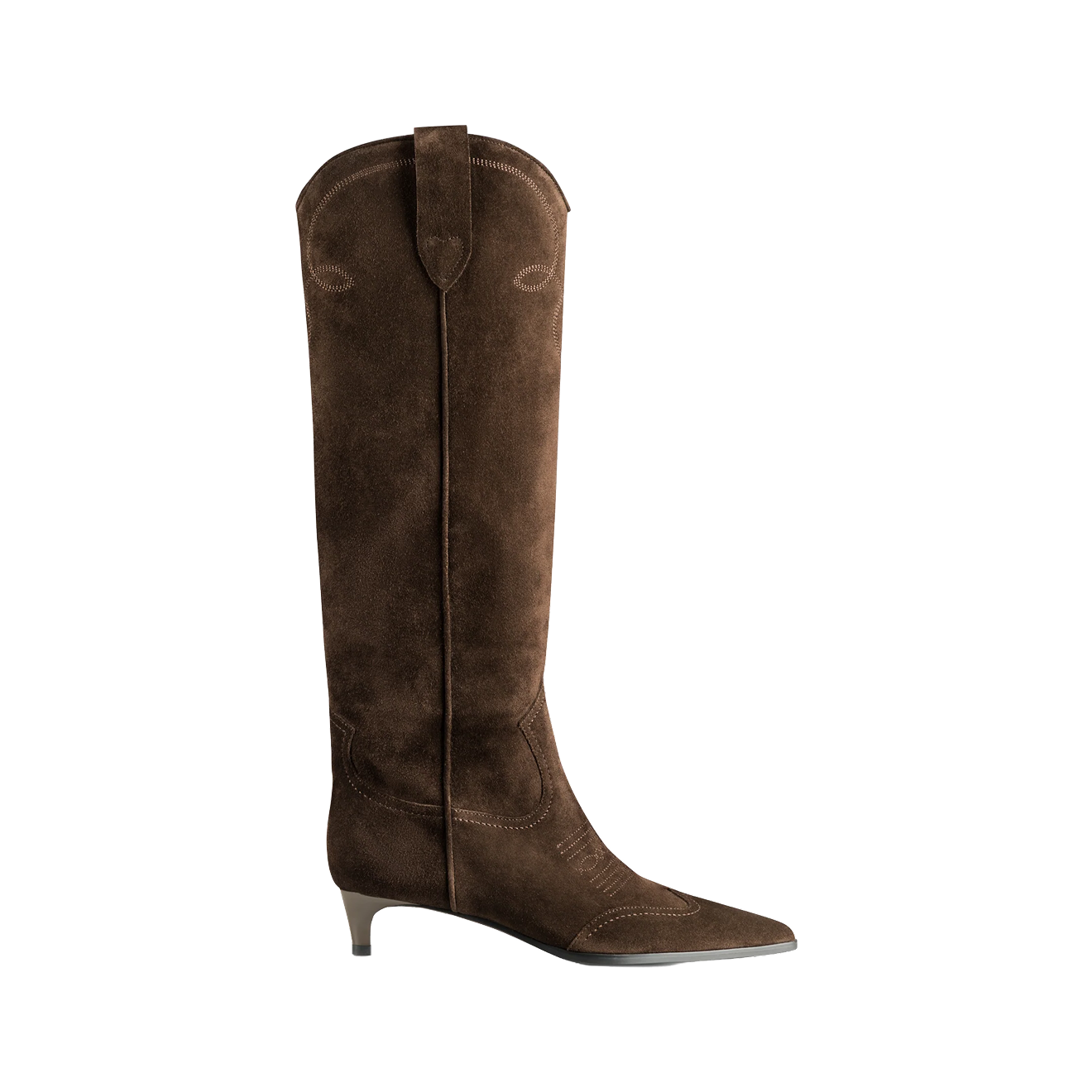 В коллекциях 2026 года дизайнеры сделали ставку на лаконичные модели с акцентом не на декоративных деталях и характерной контрастной строчке, а на формах и фактурах. У Acne Studios были сапоги из глянцевой тисненой кожи, у Gabriela Hearst — классические казаки, но на заметной массивной подошве, у Maison Margiela — модель с выразительными вырезами на голенище. Такой минимализм позволяет сочетать ковбойские сапоги и с брючным костюмом, и с легким платьем, и с джинсами.