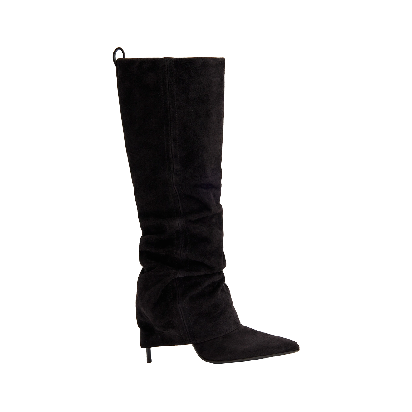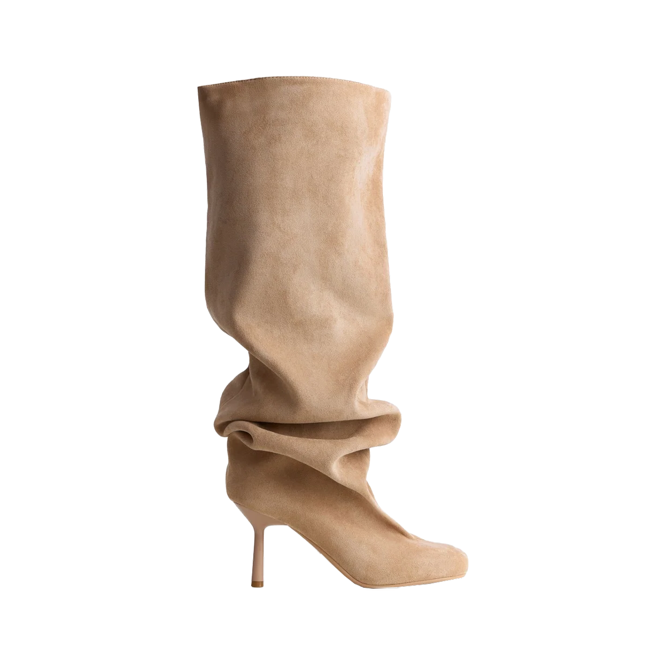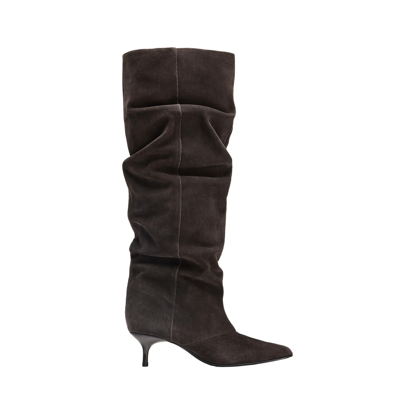 Сапоги-слаучи, или «гармошки», — логичное продолжение тренда на расслабленные силуэты и мягкие формы, которых было много и в обуви, и в сумках, и в одежде. Вариаций слаучей в коллекциях 2026 года была масса: от невысоких моделей в стиле «пиратских» сапог Вествуд и вариантов на изящном каблуке-рюмочке до эффектных ботфортов, как у Sportmax.