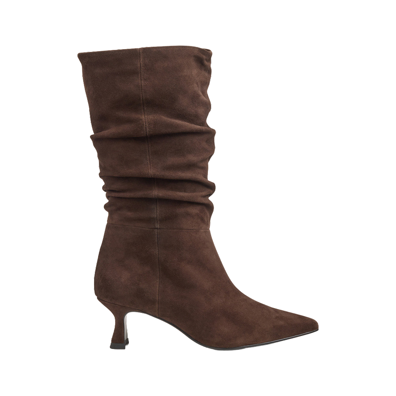 Самыми популярными сапогами вновь оказались модели с присборенным голенищем, а самыми эффектными — рыбацкие ботфорты, которые в этом сезоне можно носить с короткими юбками и платьями. Замыкают топ изящные сапоги-чулки и минималистичные казаки.