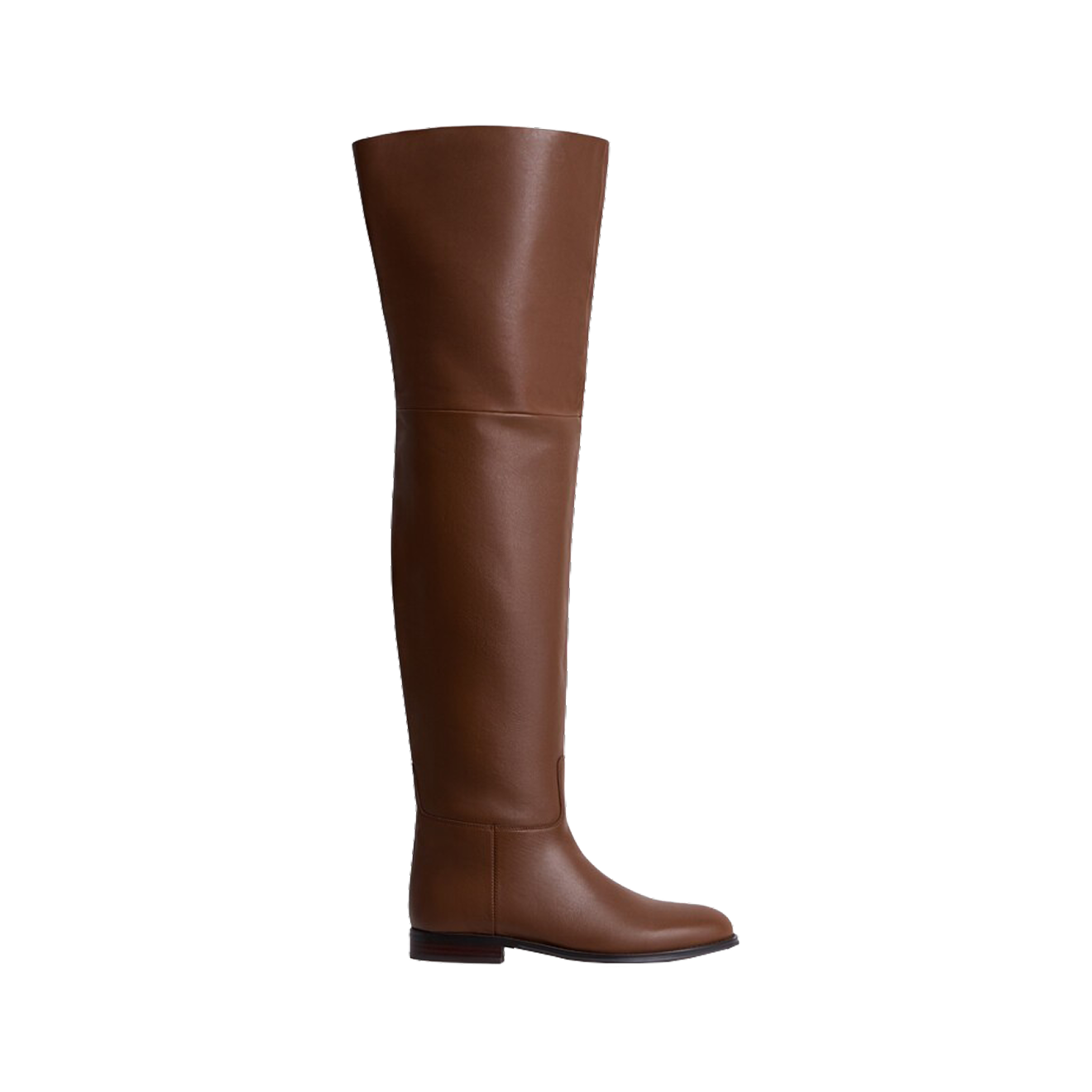 Конкуренцию изящным высоким сапогам-чулкам и расслабленным слаучам составили грубоватые ботфорты в рыбацком стиле. Их можно узнать по высокому структурированному голенищу, слегка расширяющемуся кверху, и минимуму декора. Силуэт отсылает к профессиональной экипировке рыбаков, а точнее — к высоким непромокаемым сапогам-болотникам из плотной кожи или каучука, появившимся в середине 19 века.