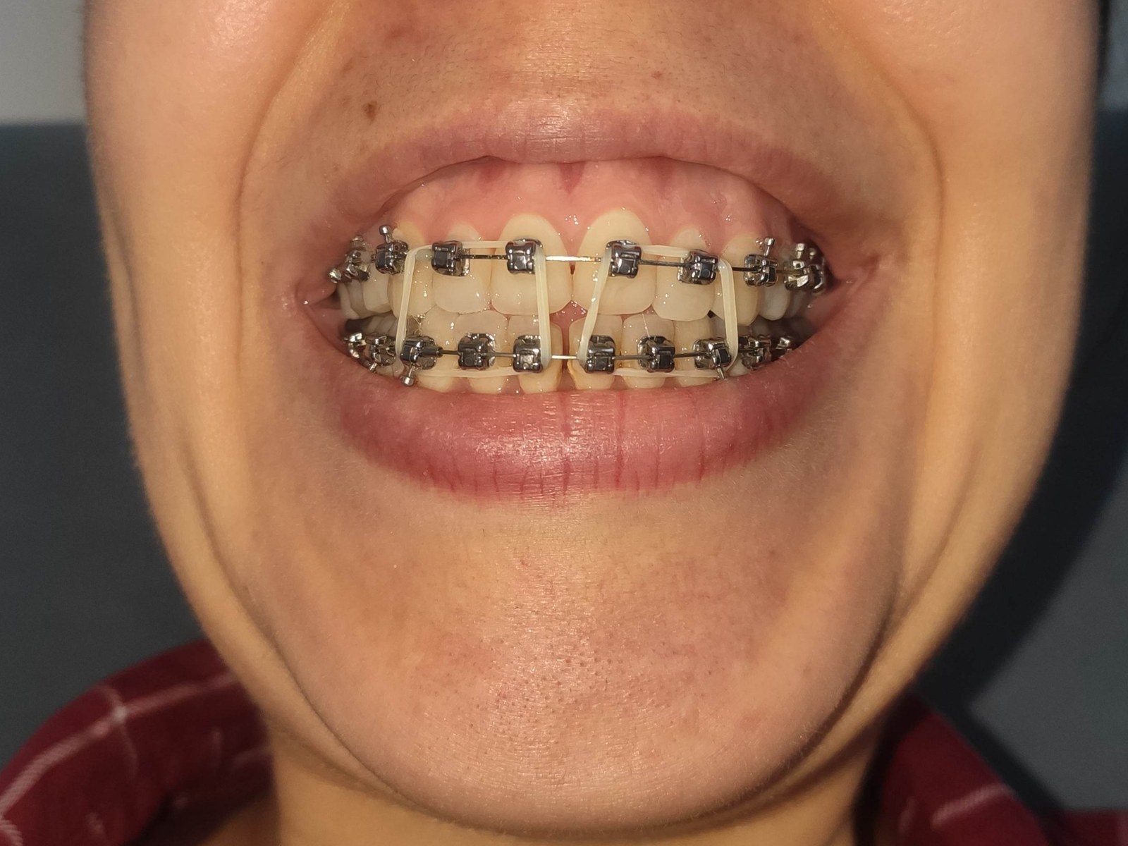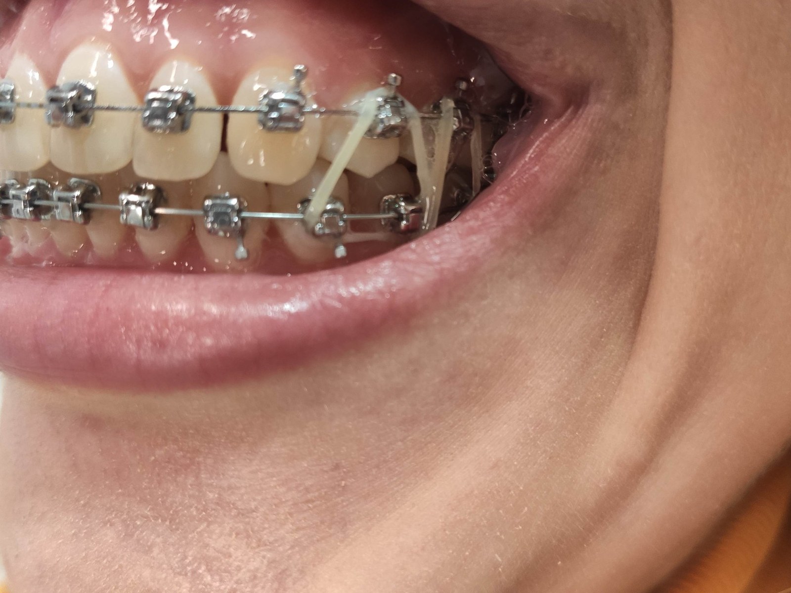 Сначала мы установили брекеты на верхний ряд, через месяц — на нижний. Брекеты у меня были Damon Q (самолигирующая система). Первое время было очень больно. Сами брекеты царапают рот, ночью особенно тяжело: зубы двигаются и постоянно ноют.