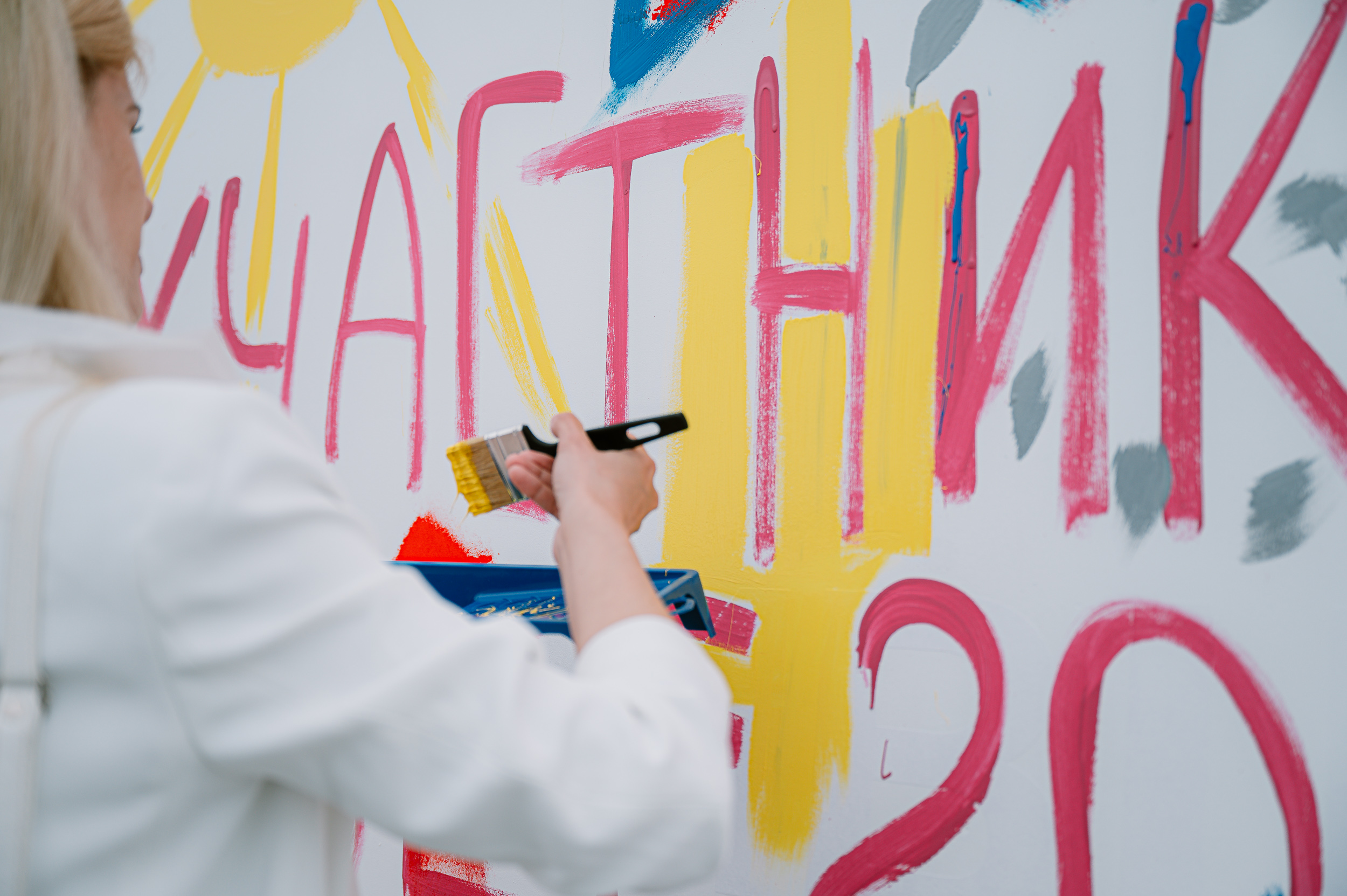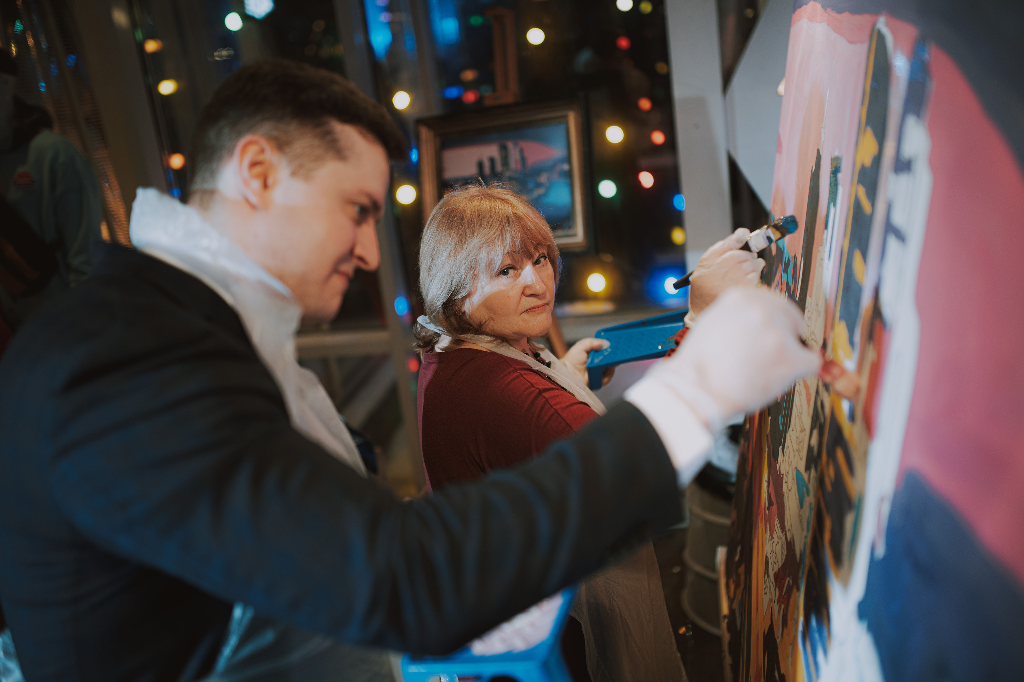 3. Художник. Самая важная часть процесса. С одной стороны, нужен профессионал, чтобы помочь участникам оставить на холсте не просто кляксы, а осмысленный рисунок. С другой — харизматичный аниматор, который вовлечёт людей, замотивирует их и поведёт за собой.