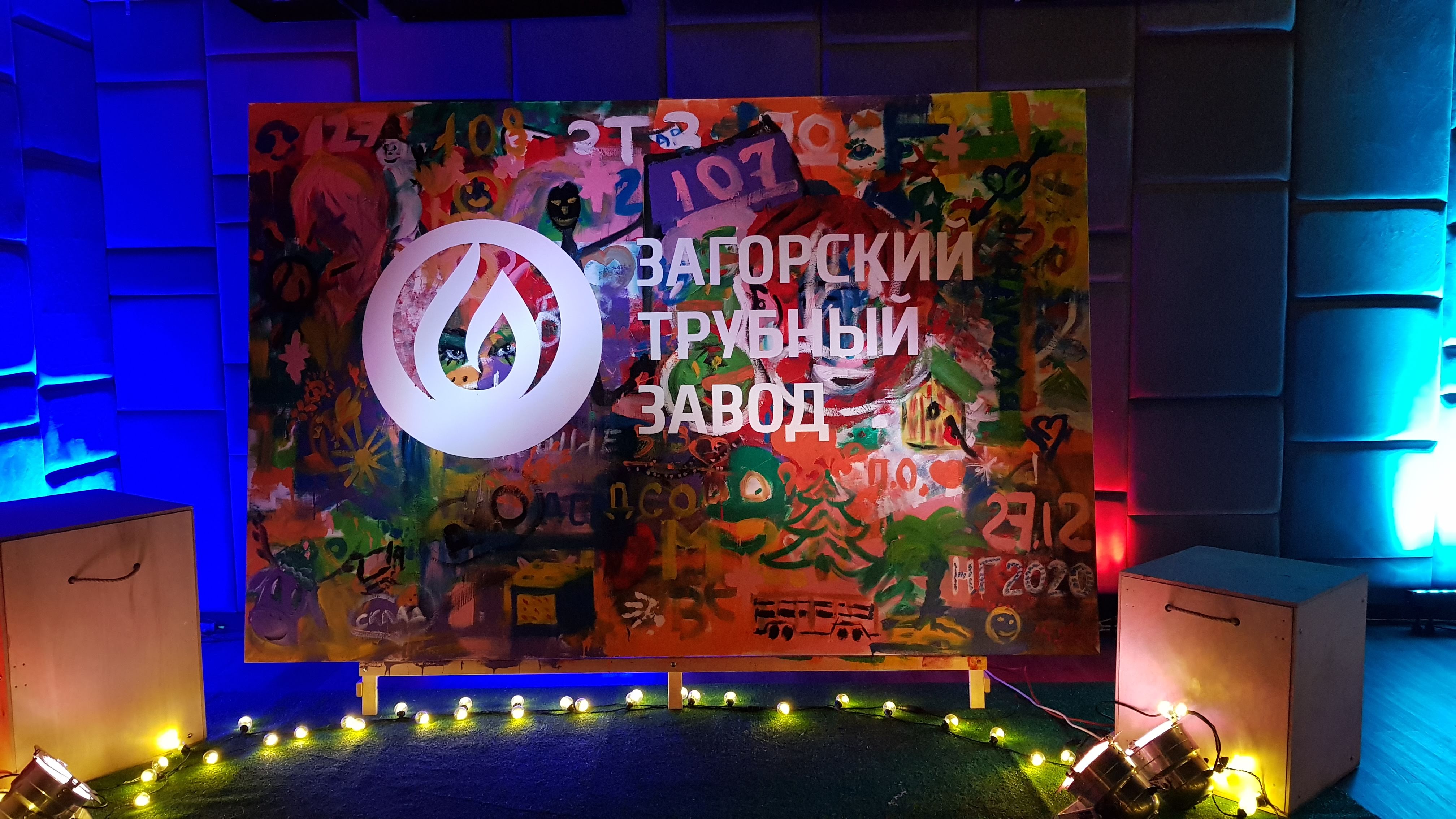Когда работа готова, мы даём краске немного подсохнуть и торжественно снимаем маску. В этот момент проявляется логотип или послание, которое мы заложили в картину заранее.