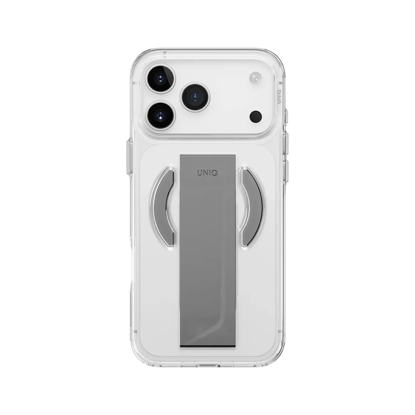 Прозрачный чехол с поддержкой Magsafe устойчив к пожелтению. Оснащен двумя силиконовыми ремешками, чтобы было удобно держать в руке телефон, особенно такой крупный, как iPhone 17 Pro Max
