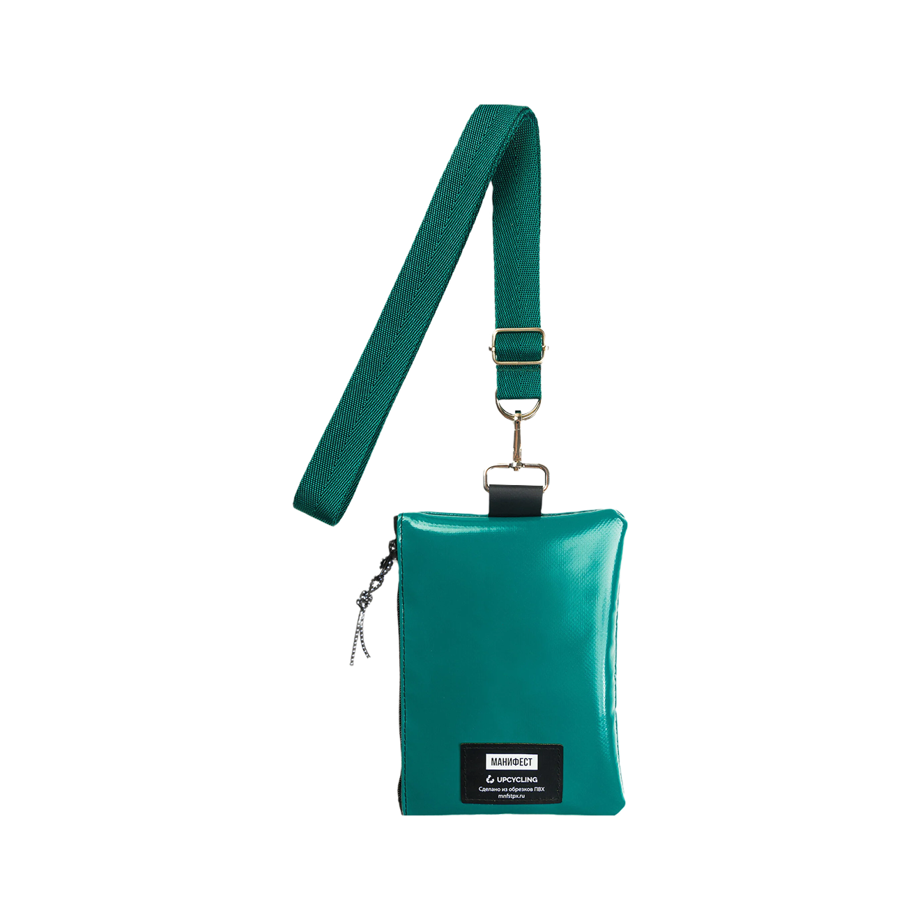 Петербургский проект «Манифест» делает аксессуары из переработанных материалов. Новинка изумрудного цвета — не исключение. Сумка создана из обрезков с производства лодок и спортивного инвентаря