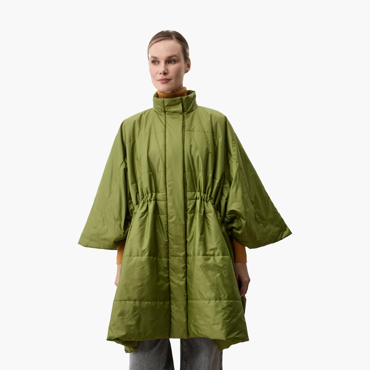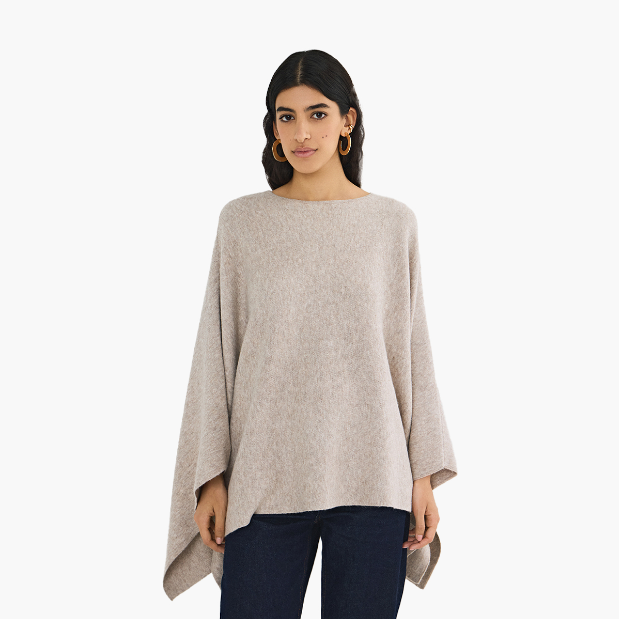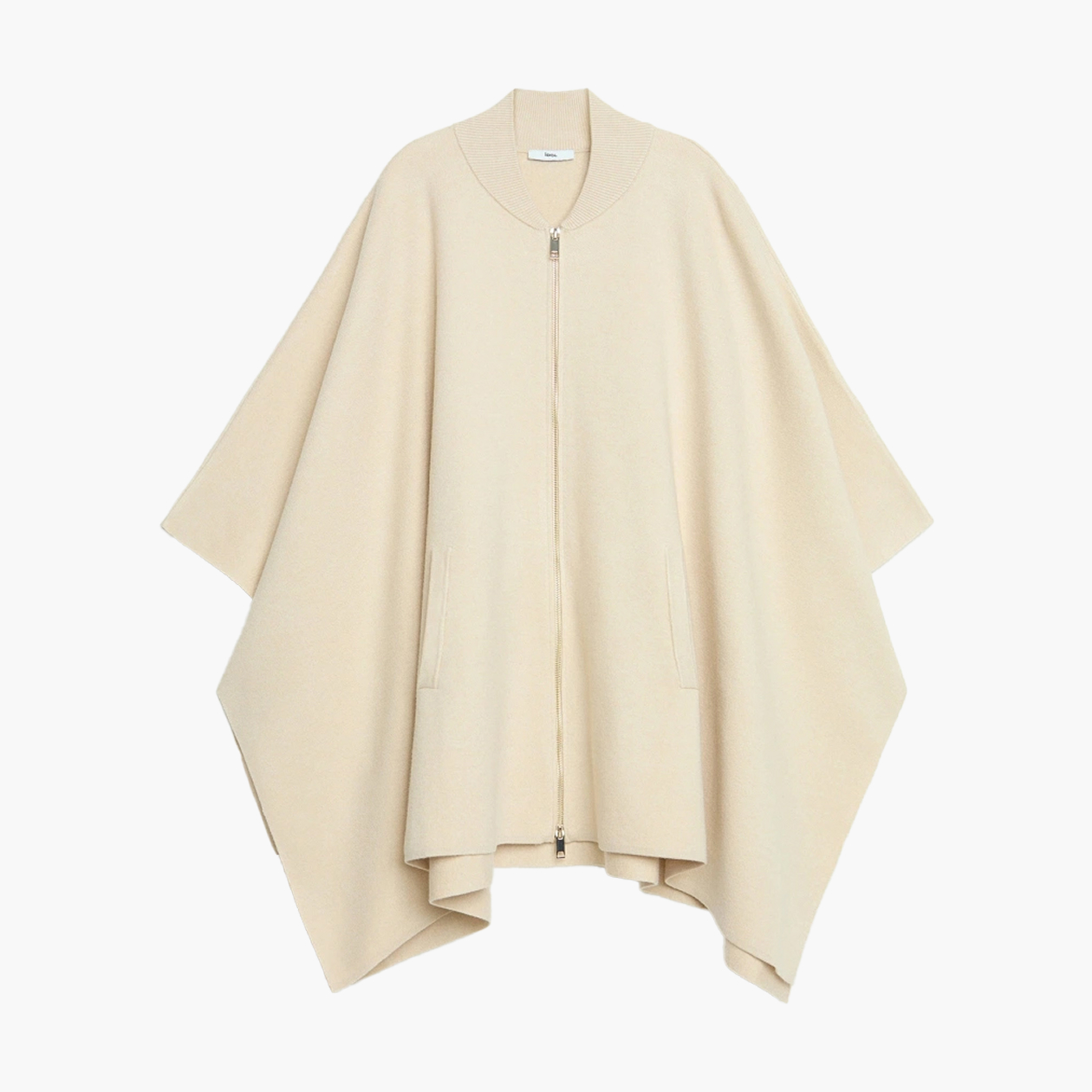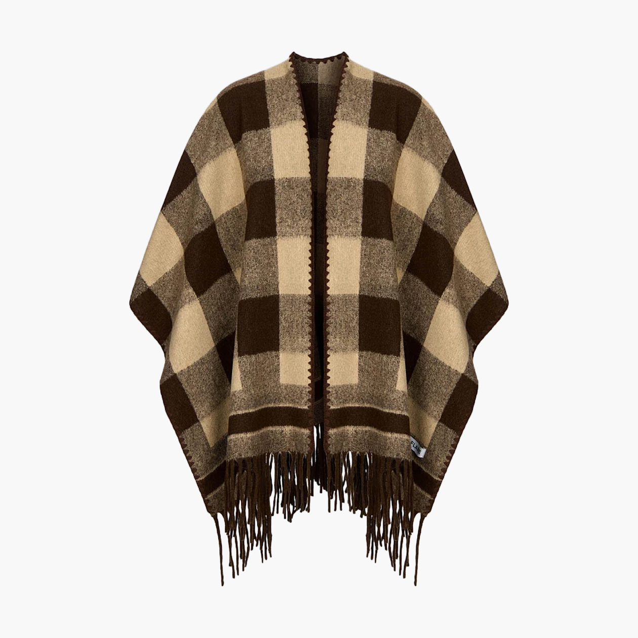 Кейп — это накидка с прорезями для рук, а пончо — без. Когда-то они могли заменить и верхнюю одежду, и плед… впрочем, ничего не изменилось — это по-прежнему очень функциональный предмет гардероба, а в 2025 году еще и очень модный.