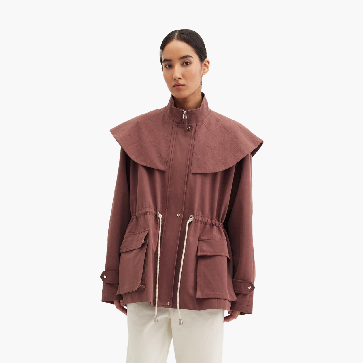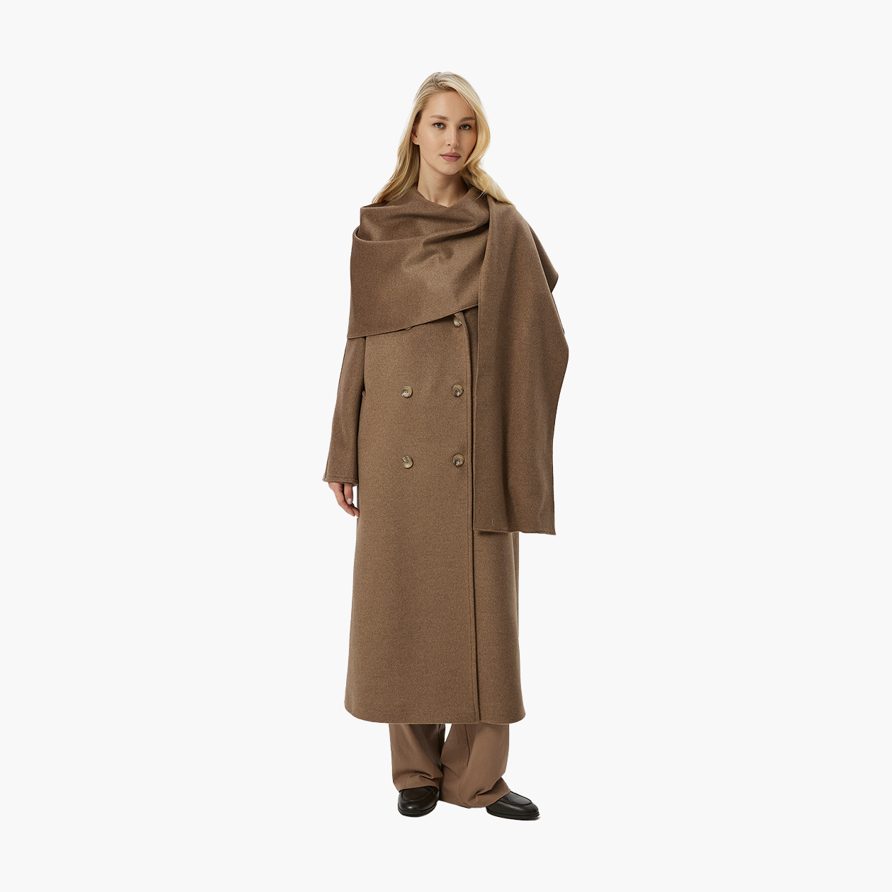 Верхняя одежда со встроенной накидкой — это следующий уровень развития тренда. С тех пор как в 2021 году шведский бренд Toteme показал укороченное пальто с пришитым шарфом, тот же прием повторяют в осенних коллекциях многие дизайнеры по всему миру, включая российских.