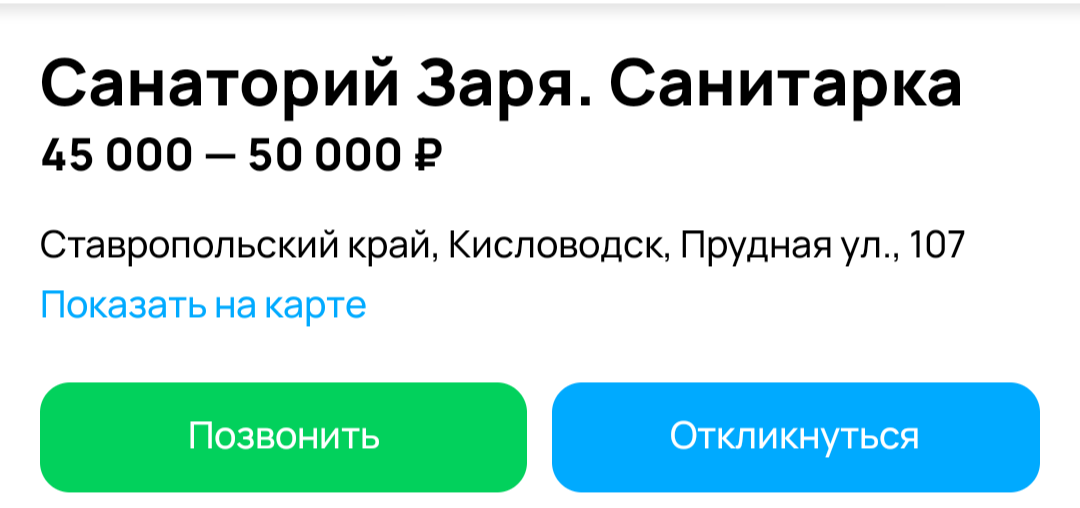 Вот, например, казалось бы, какой подвох с оплатой труда может быть в таком учреждении, как санаторий? В вакансиях на должность горничных и санитарок в большинстве санаториев Кавминвод указана сумма з/п — от 40 до 60 тысяч рублей. Сразу возникает вопрос: в регионе, где средняя зарплата (не по сведениям статистики, которая постоянно врет, а по факту) в районе МРОТ, никто не хочет работать за такие деньги? Что-то не вяжется. Задаешь по телефону вопрос: