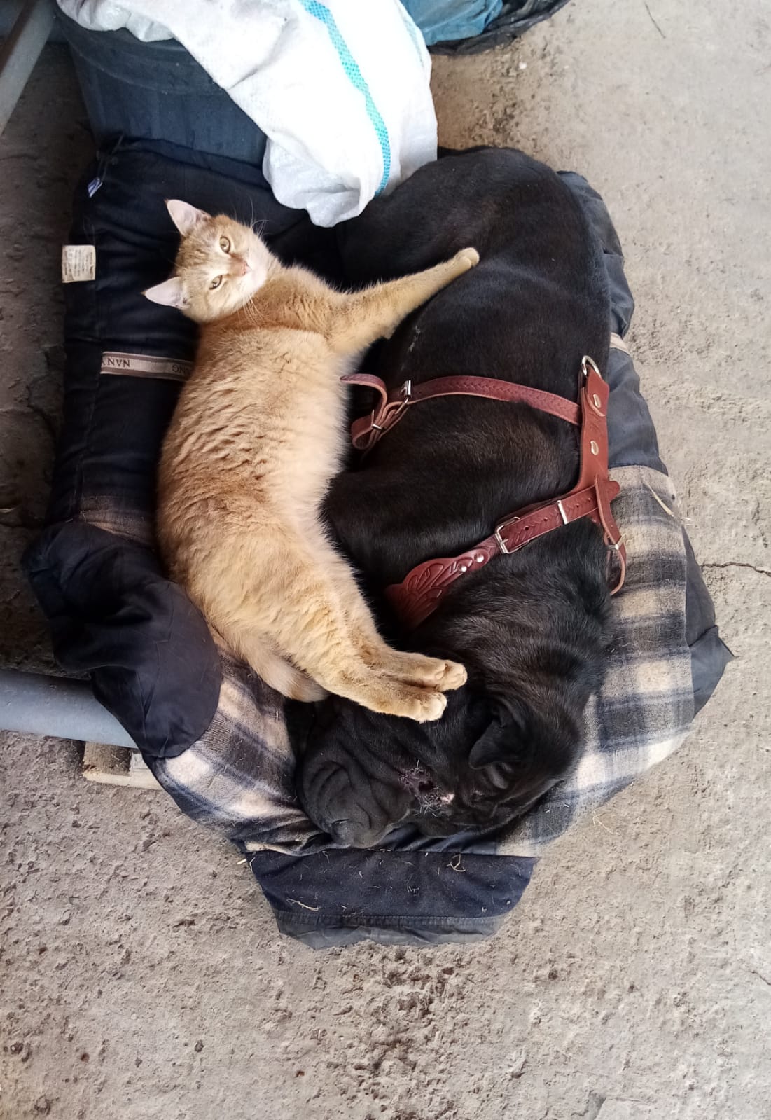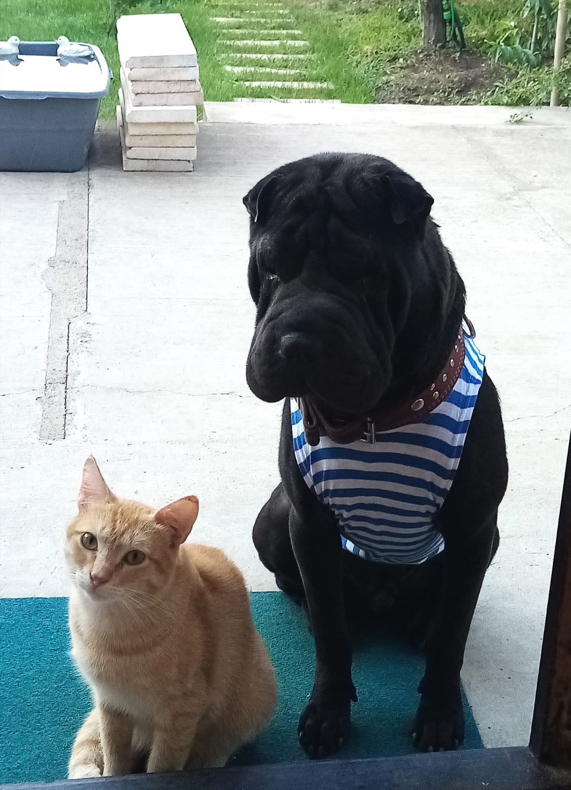 Фото питомца: кот Алька и шарпей Блейд демонстрируют дружбу