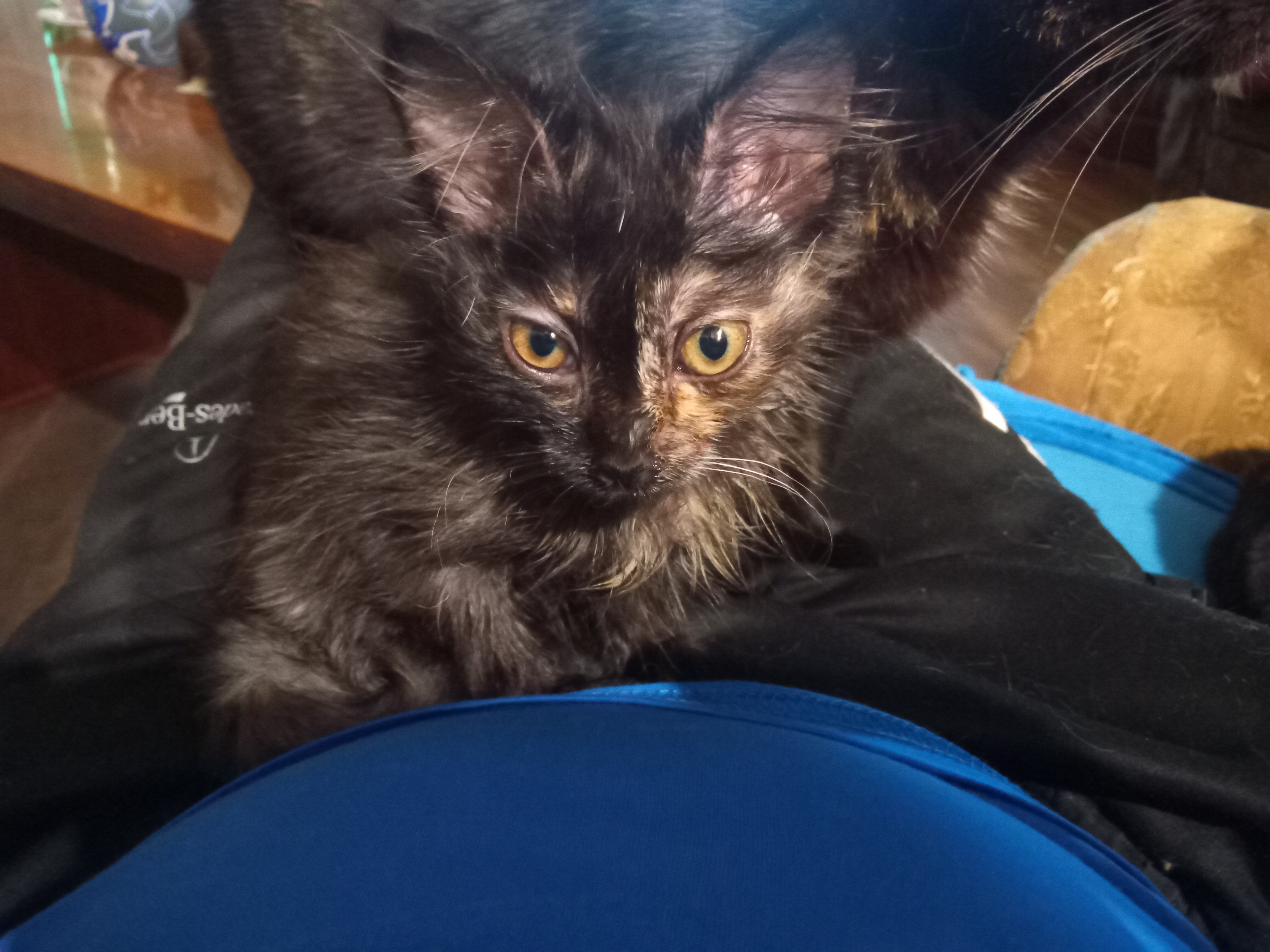 Бумбарашка как-то добралась к нашему забору возраст где-то 3 недели уже подлечили.