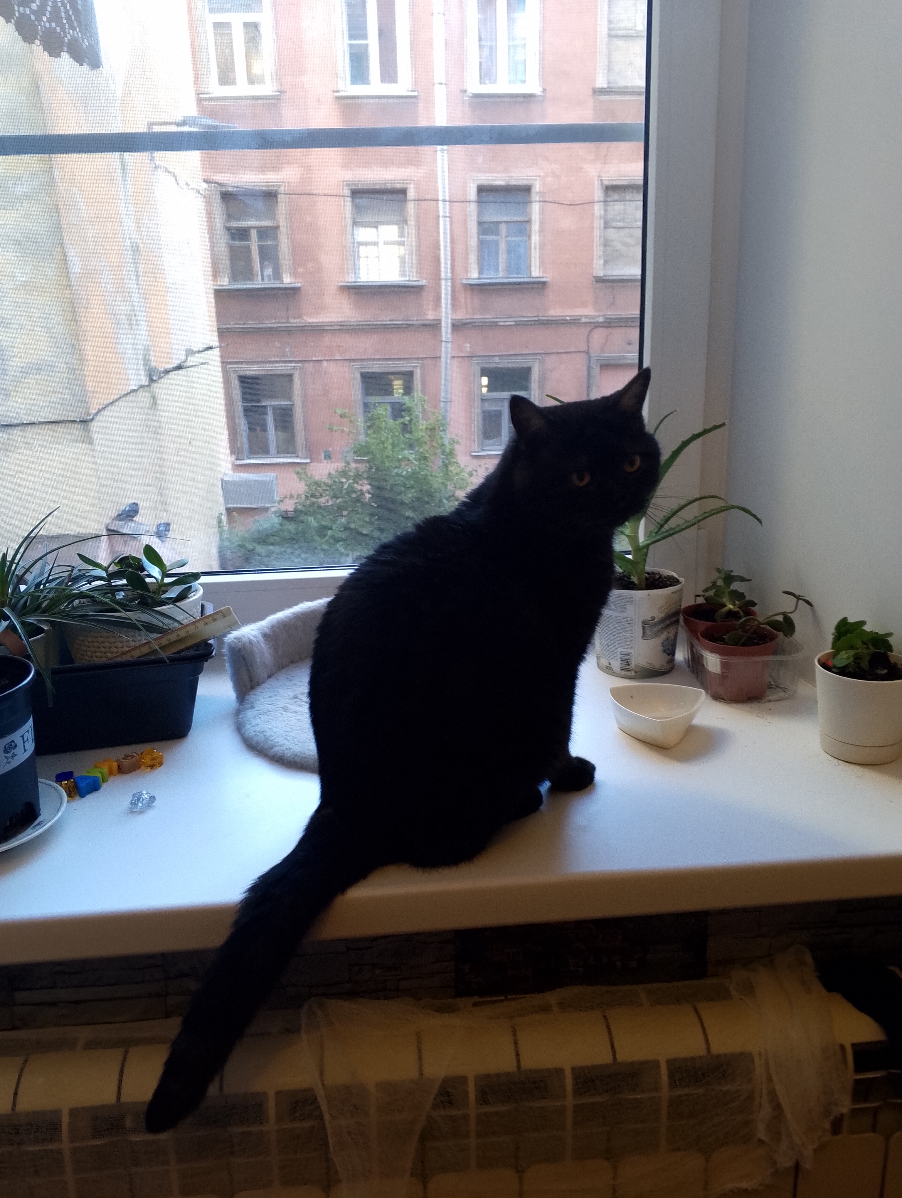 Шикарно живёт этот зверь. Обожаем всеми. Из окна наблюдает за двором. Играет. Валяется на массажном столе и спит под боком у «папы». Тот даже зовёт его «сынок».