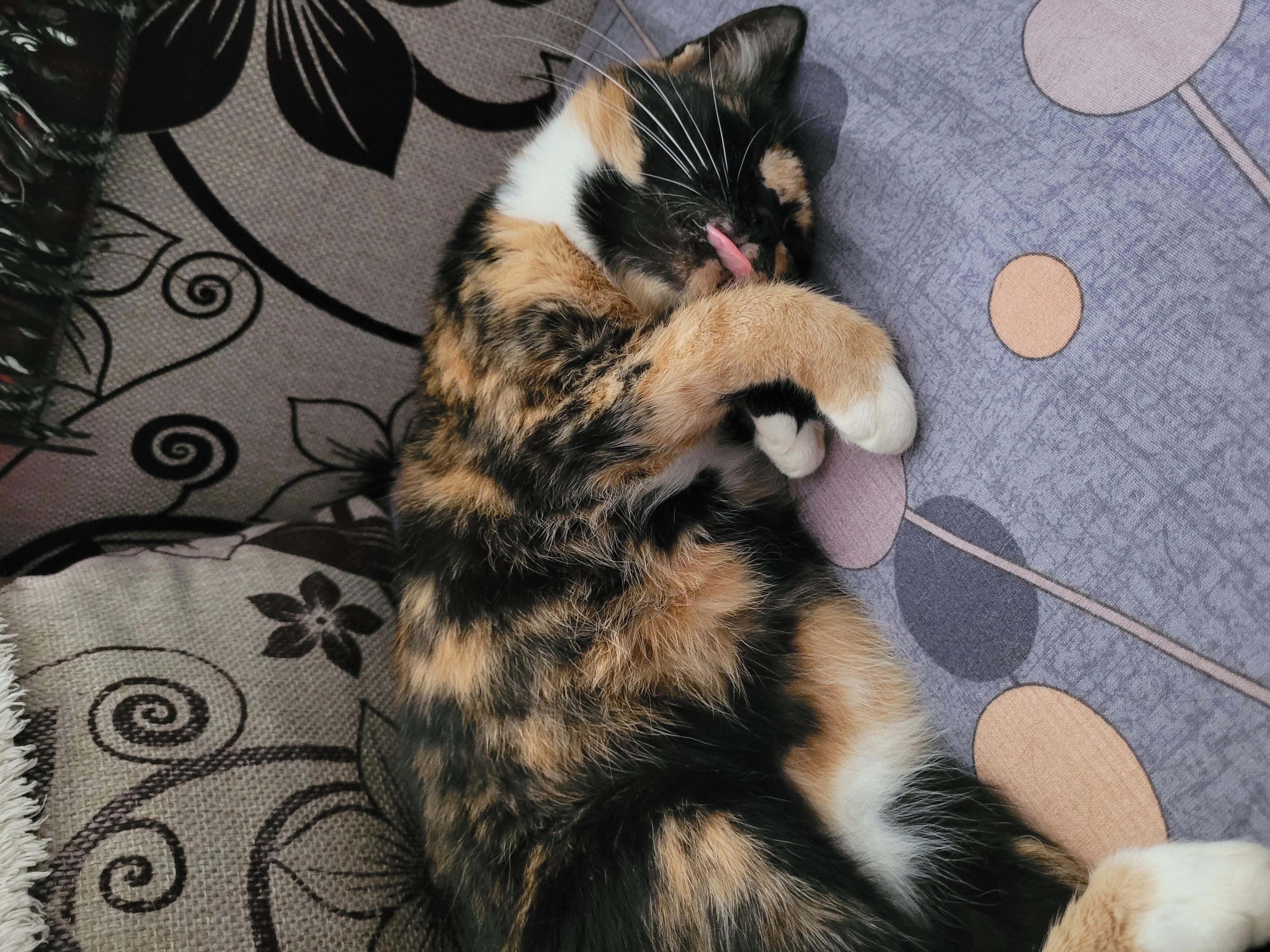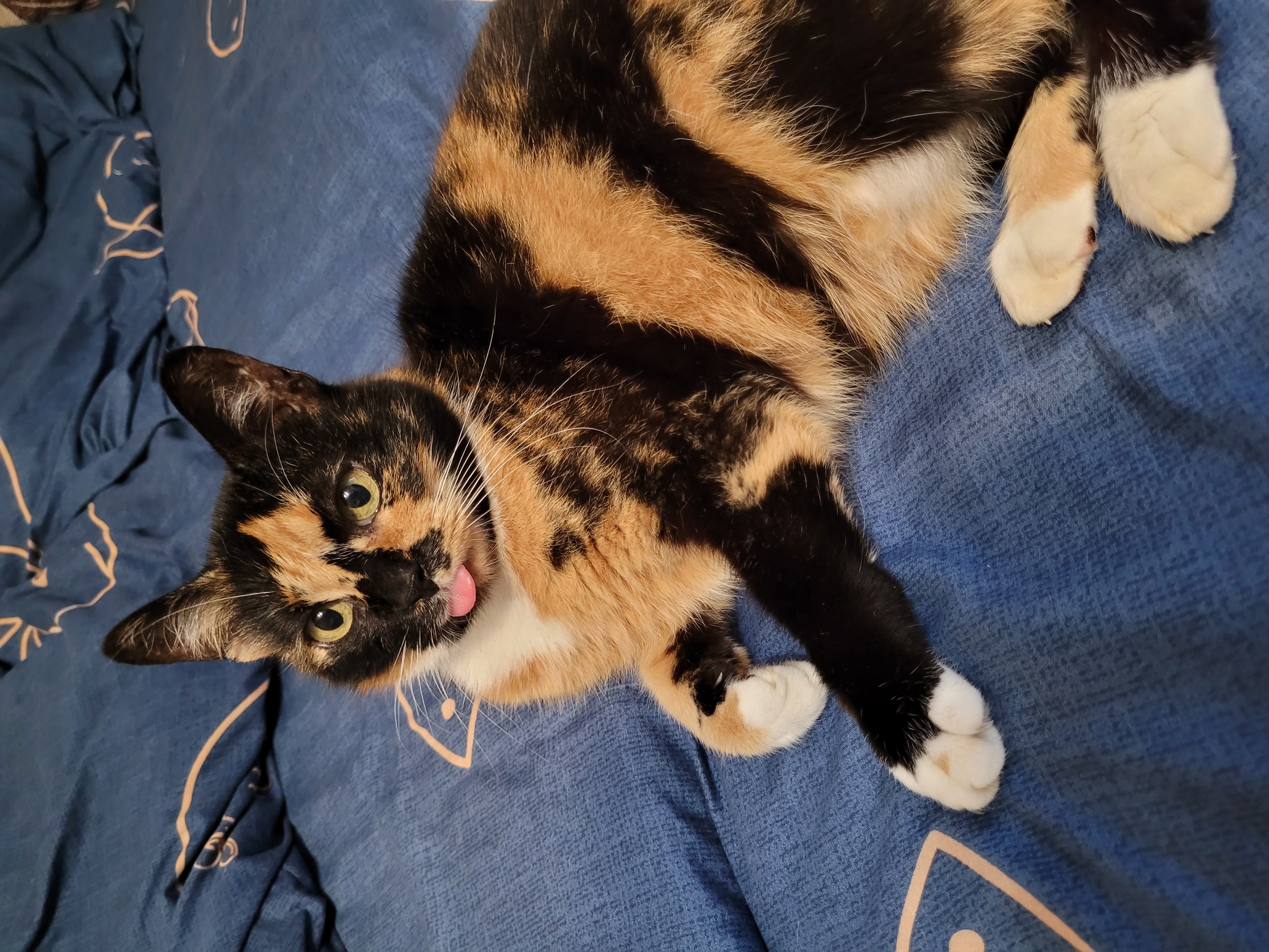 Хотя кошечку дочь назвала Триша, для меня она Дуся. Ей восьмой год. Она постоянно показывает нам язык и даже иногда спит высунув его. Вот такая у нас фифочка с фишечкой 😝