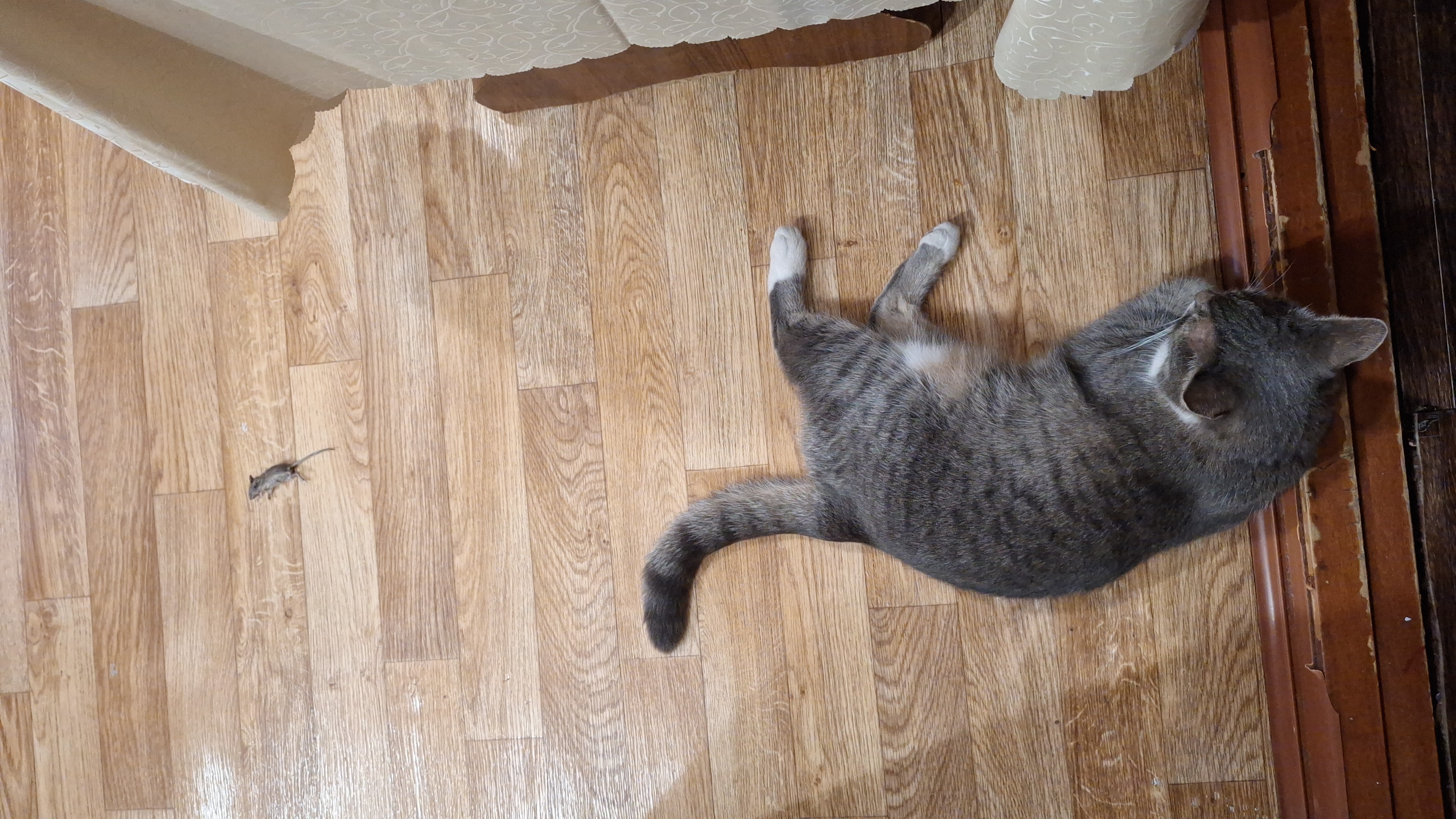 Наша умница очень любит куриную грудку. Она её, конечно, заслужила — поймала мышь 😊