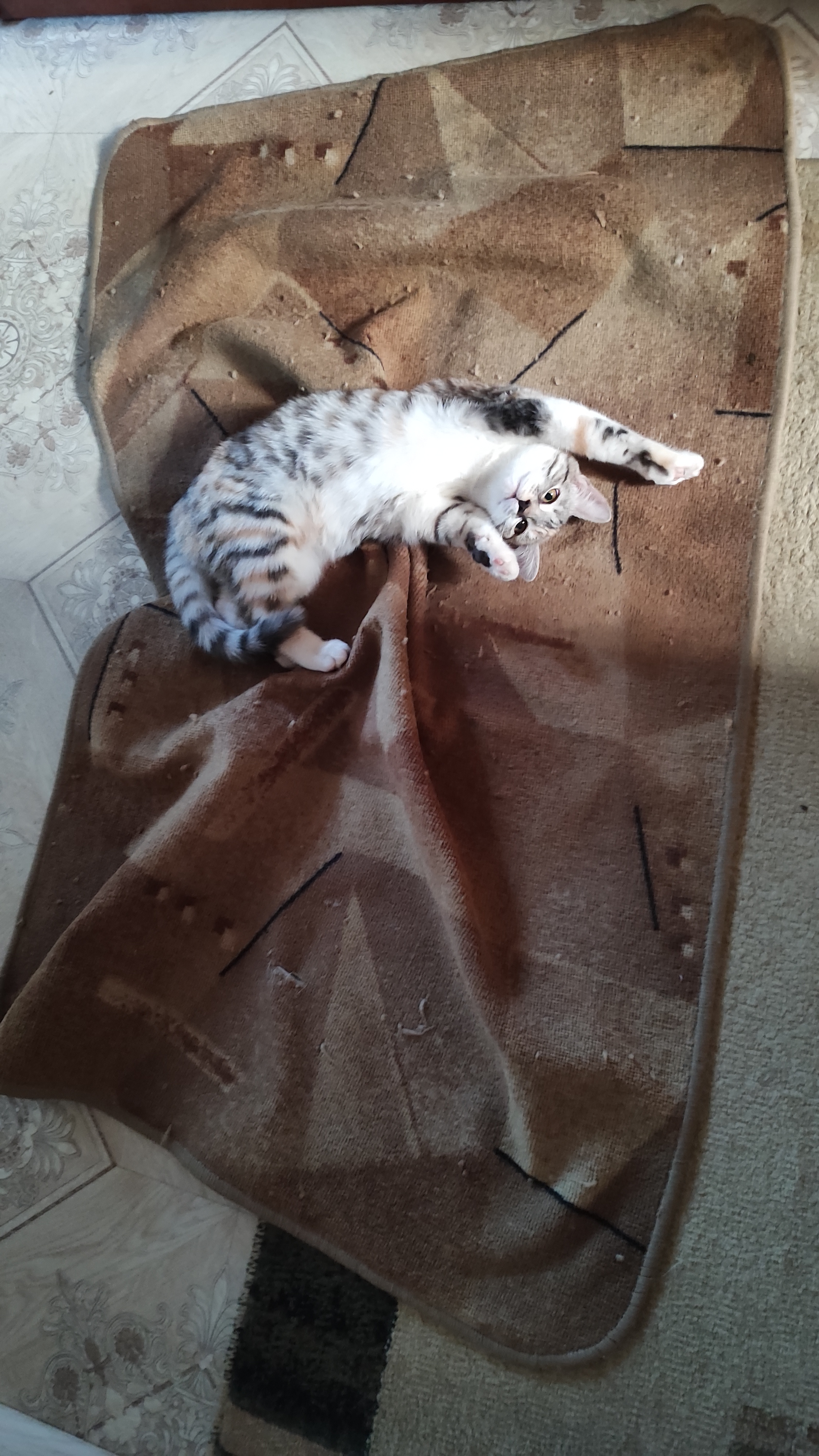 Фото питомца: кошка катается по коврику