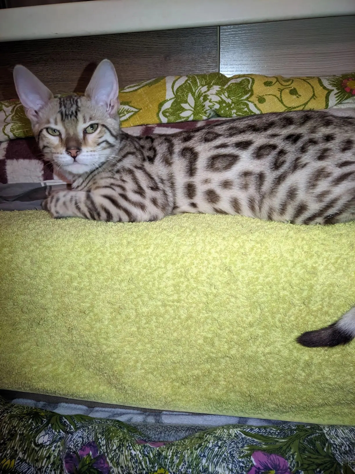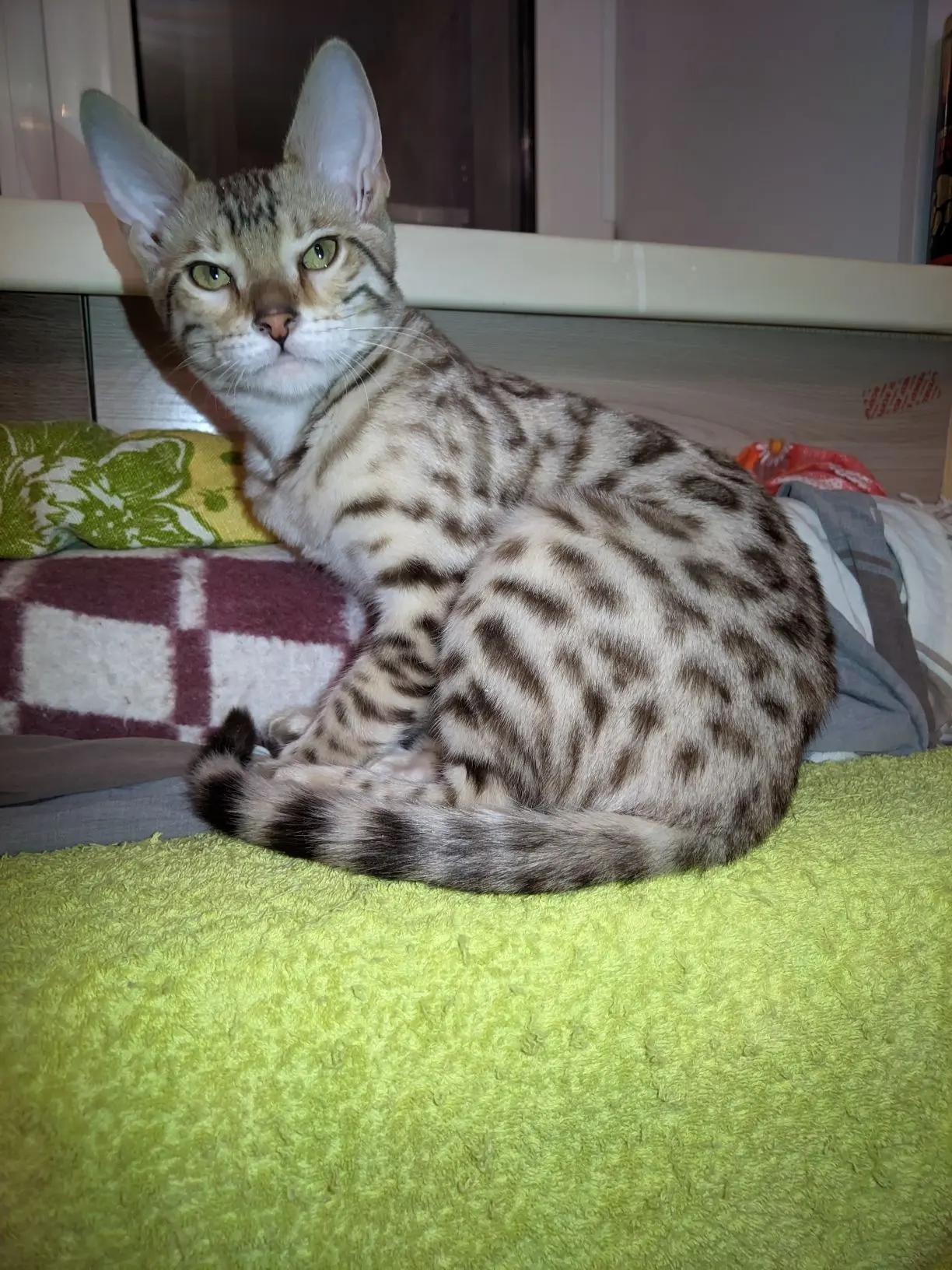 Кошечка подросла, но игривость не пропала. Хвост трубой и в бой! Лазает везде. Что-то новое, она тут. Обязательно должна присутствовать. Если хочет что-нибудь пожевать, подходит и стукает лапкой по ноге, типа угощай.