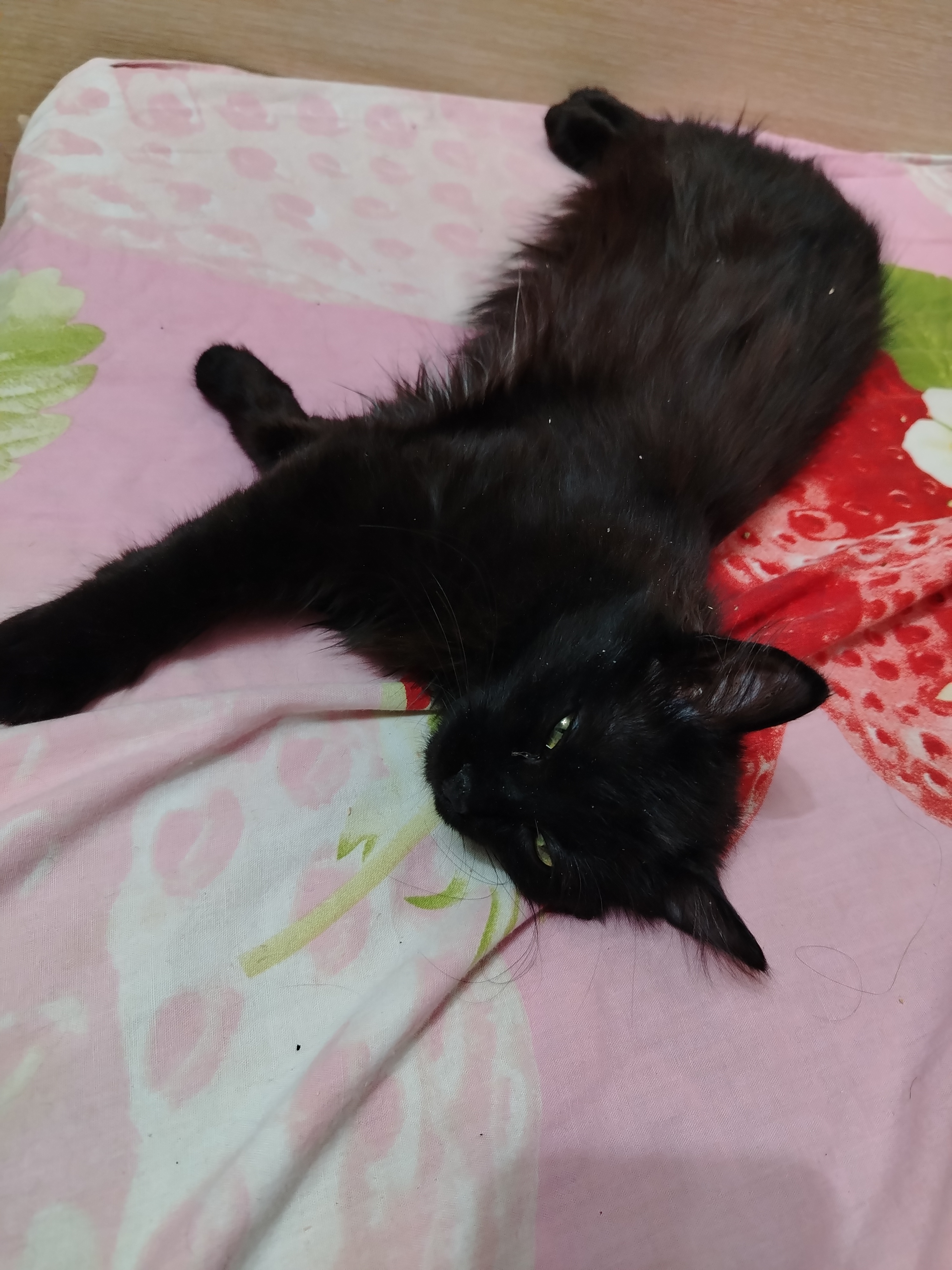 Клео в этом похожа на кота Алекса, тоже любит расслабон с вытягиванием своих конечностей по постели 🤣