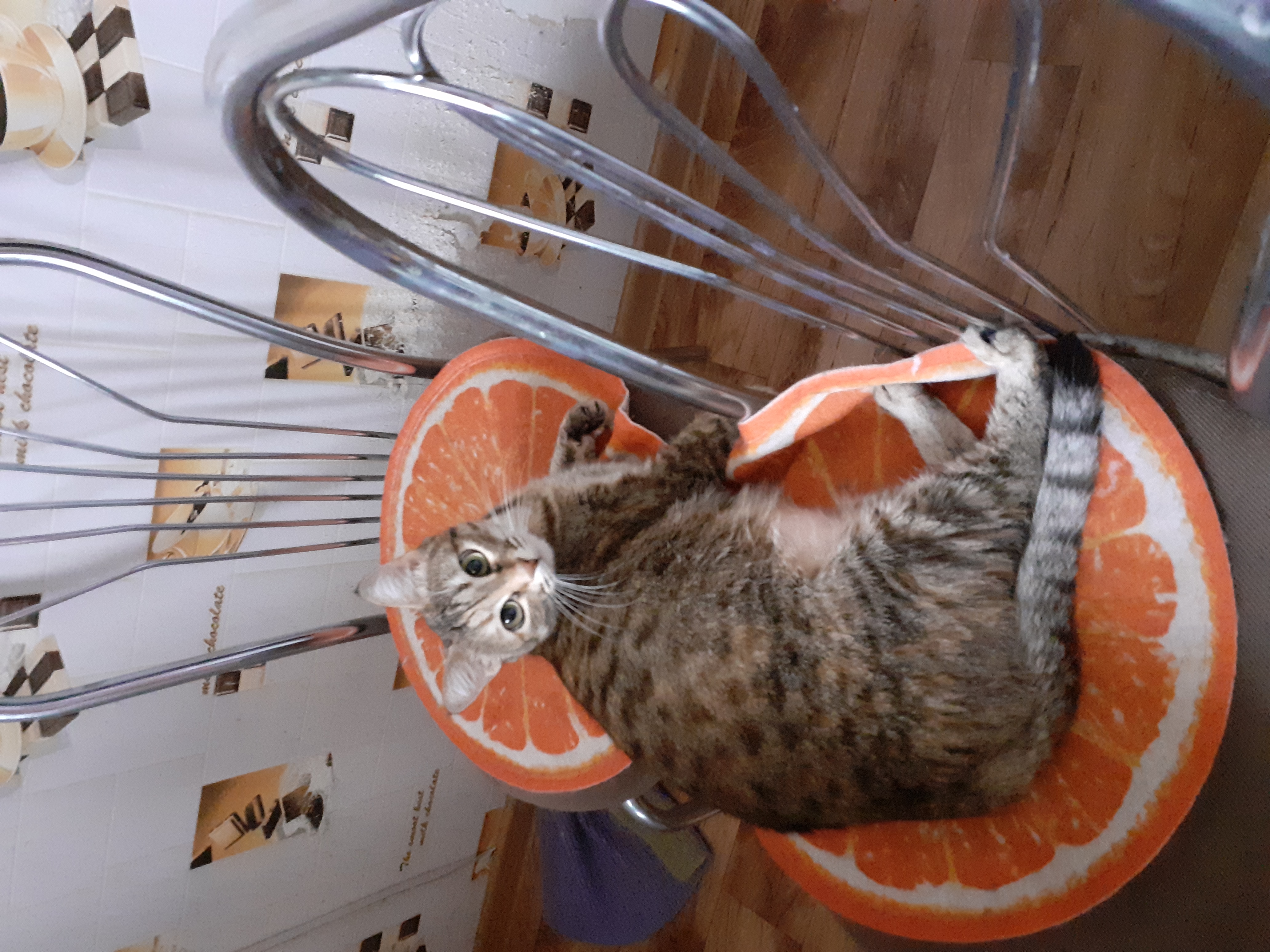 Фото питомца: кошка Кнопа лежит на двух стульях