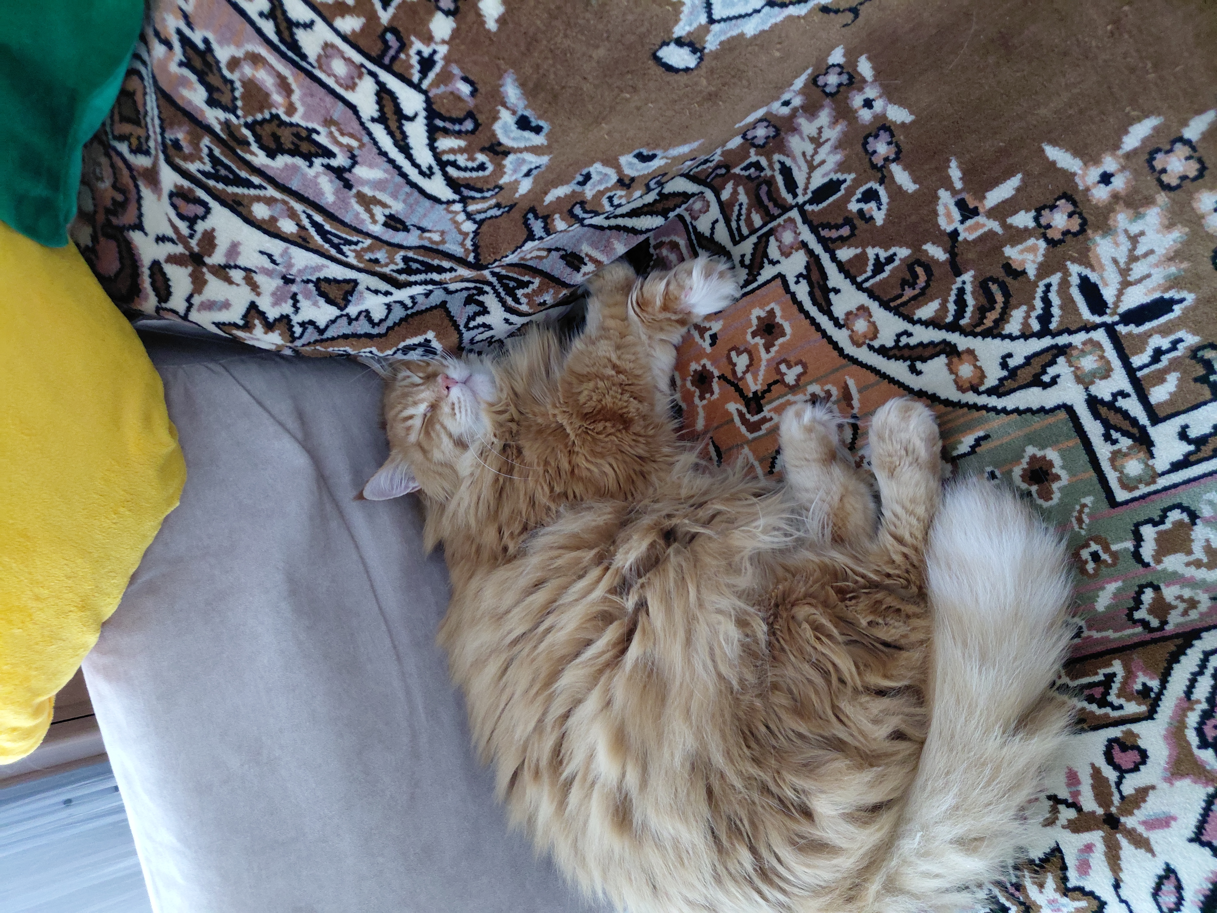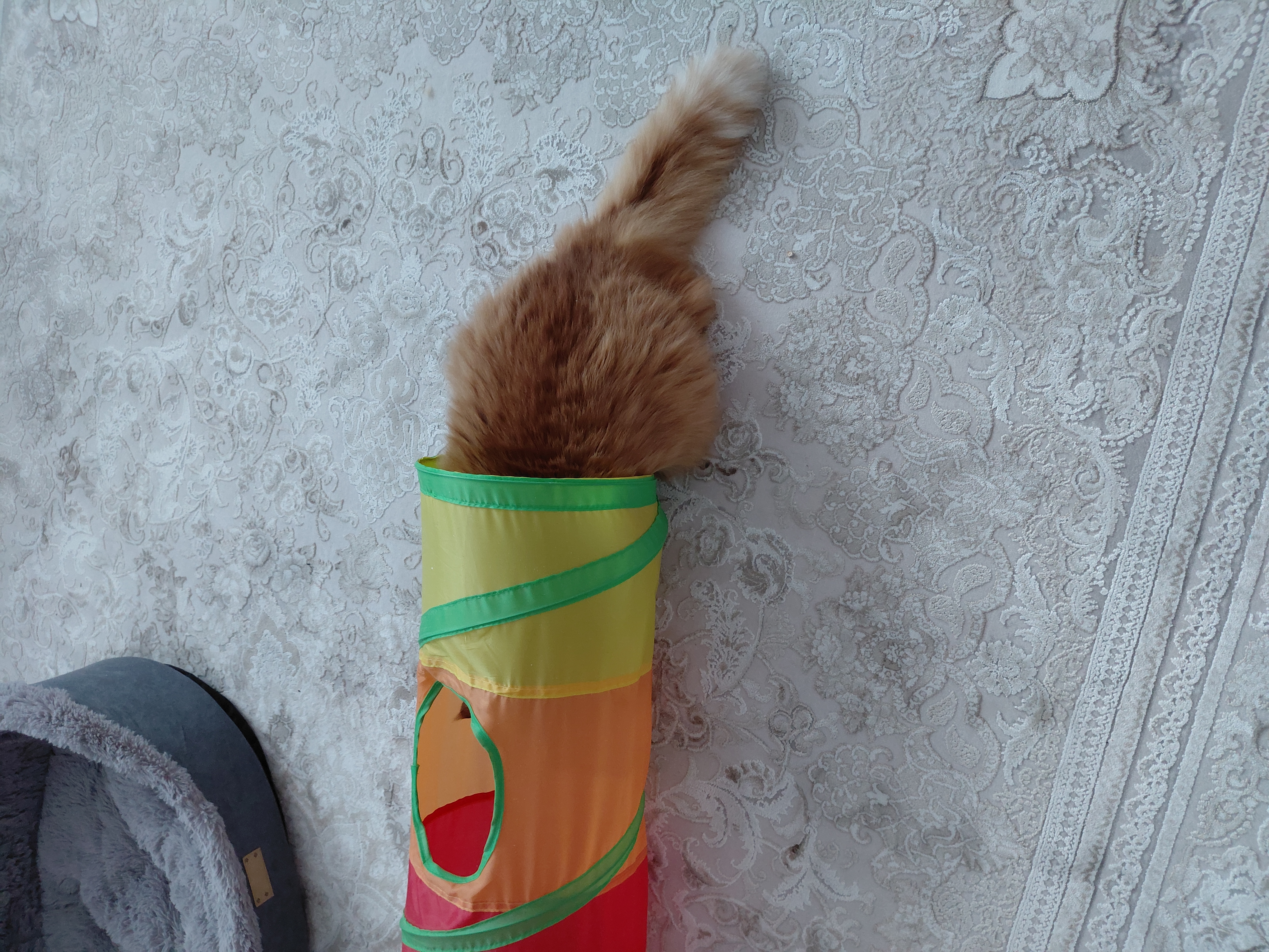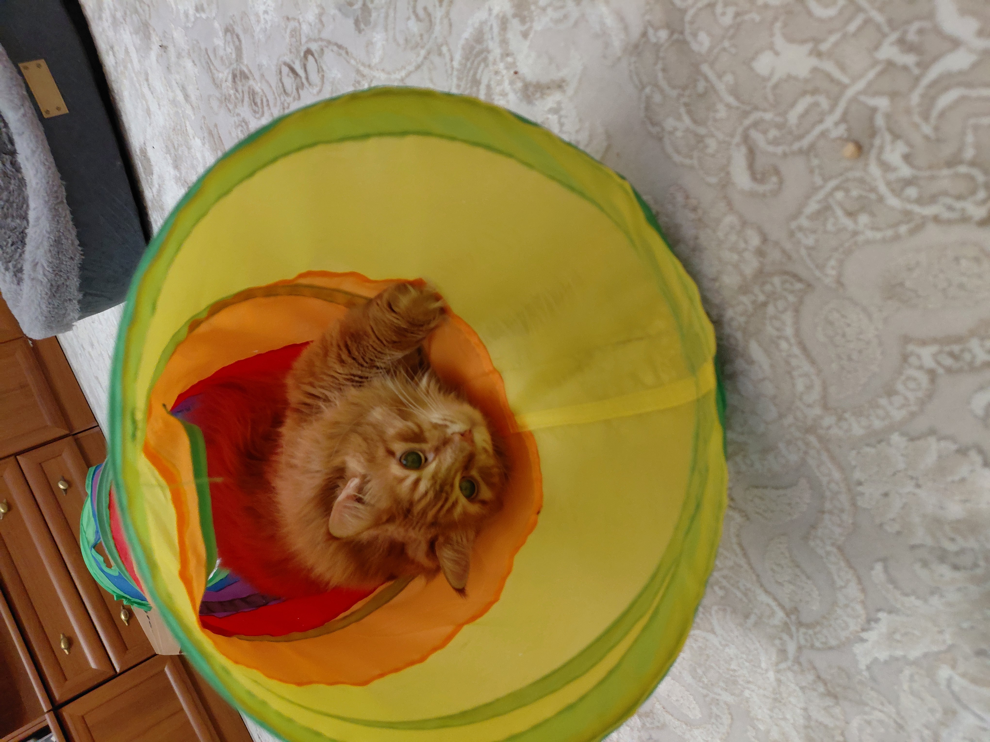 Фото питомца: кошка Маечка спит на диване после игр в трубе