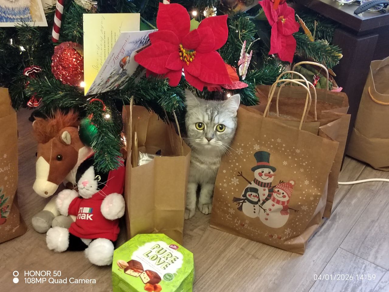 Фото питомца: кошка Масюня проверяет качество подарков