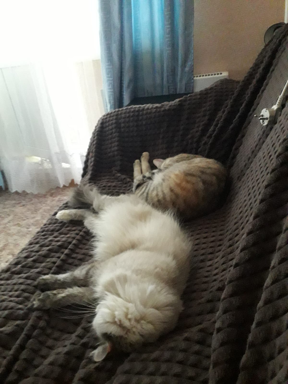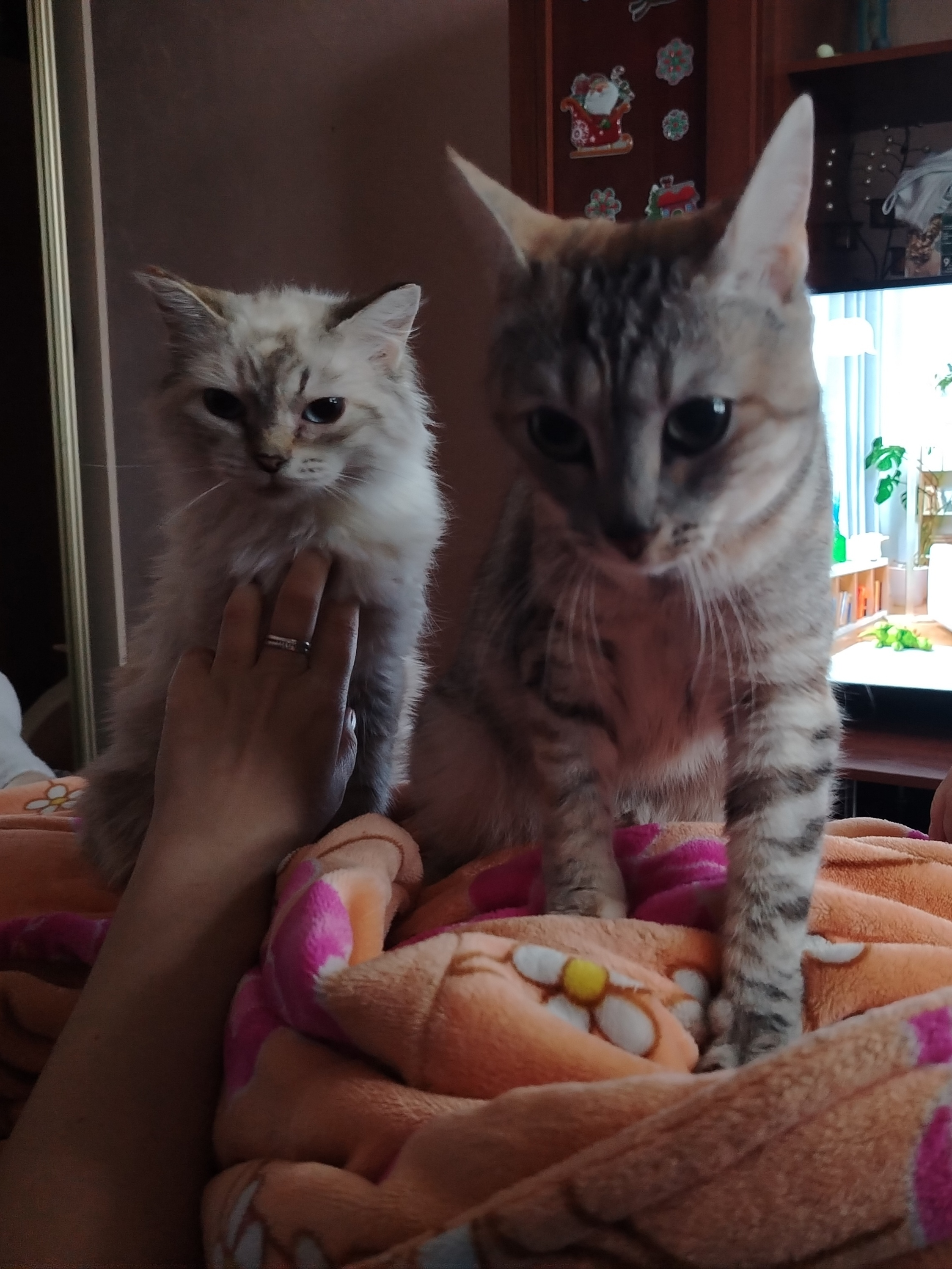 Мы постарались обустроить жильё нового питомца. Поставили новую миску с кормом и водой подальше от Сонькиной еды. Также определили место отдыха. Спустя неделю кошки уже спокойно передвигались по квартире. Сонька перестала шипеть, но все ещё внимательно наблюдала за «новым жильцом».