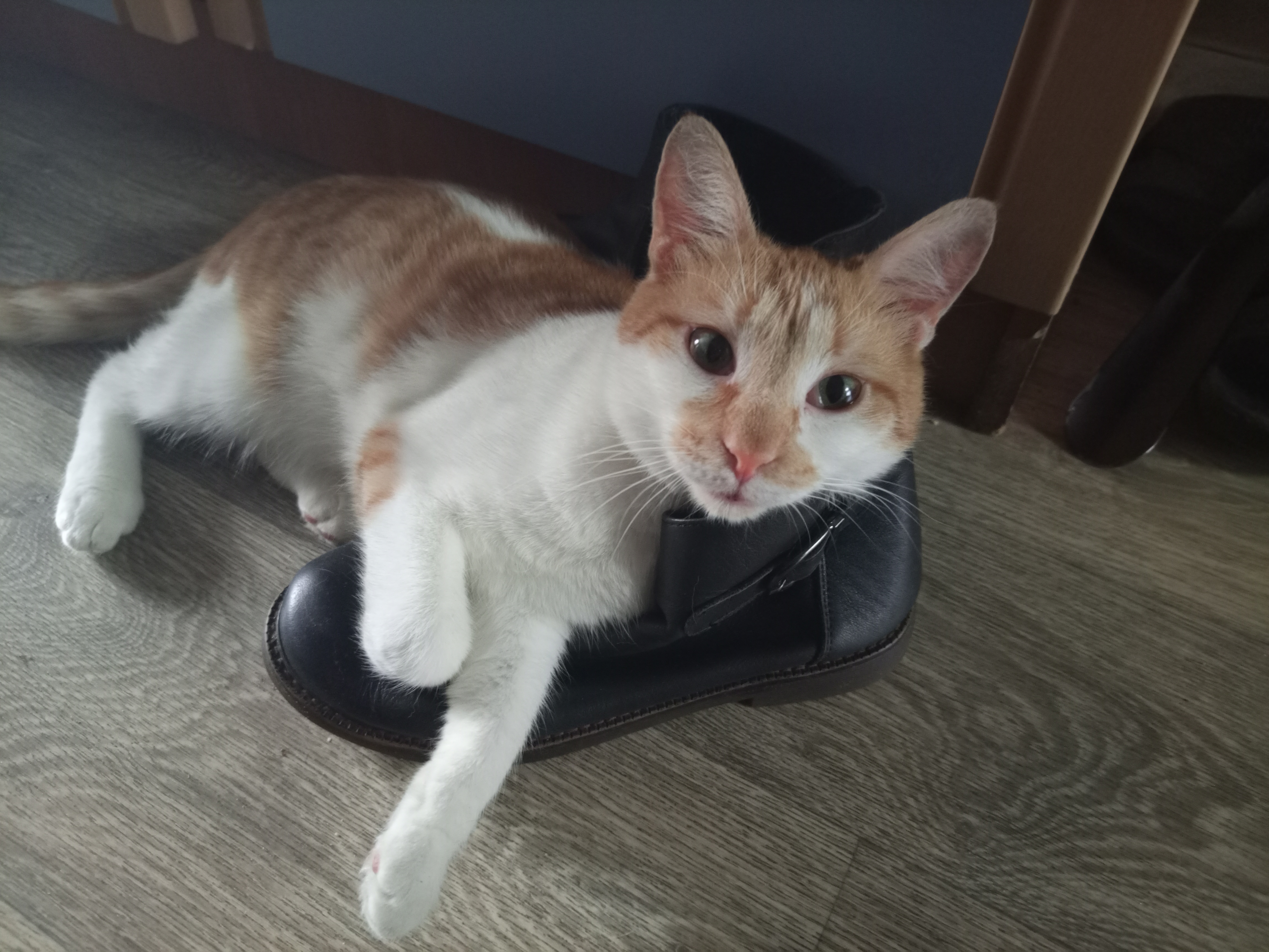 Фото питомца: кот Рыжик нежится на ботинке