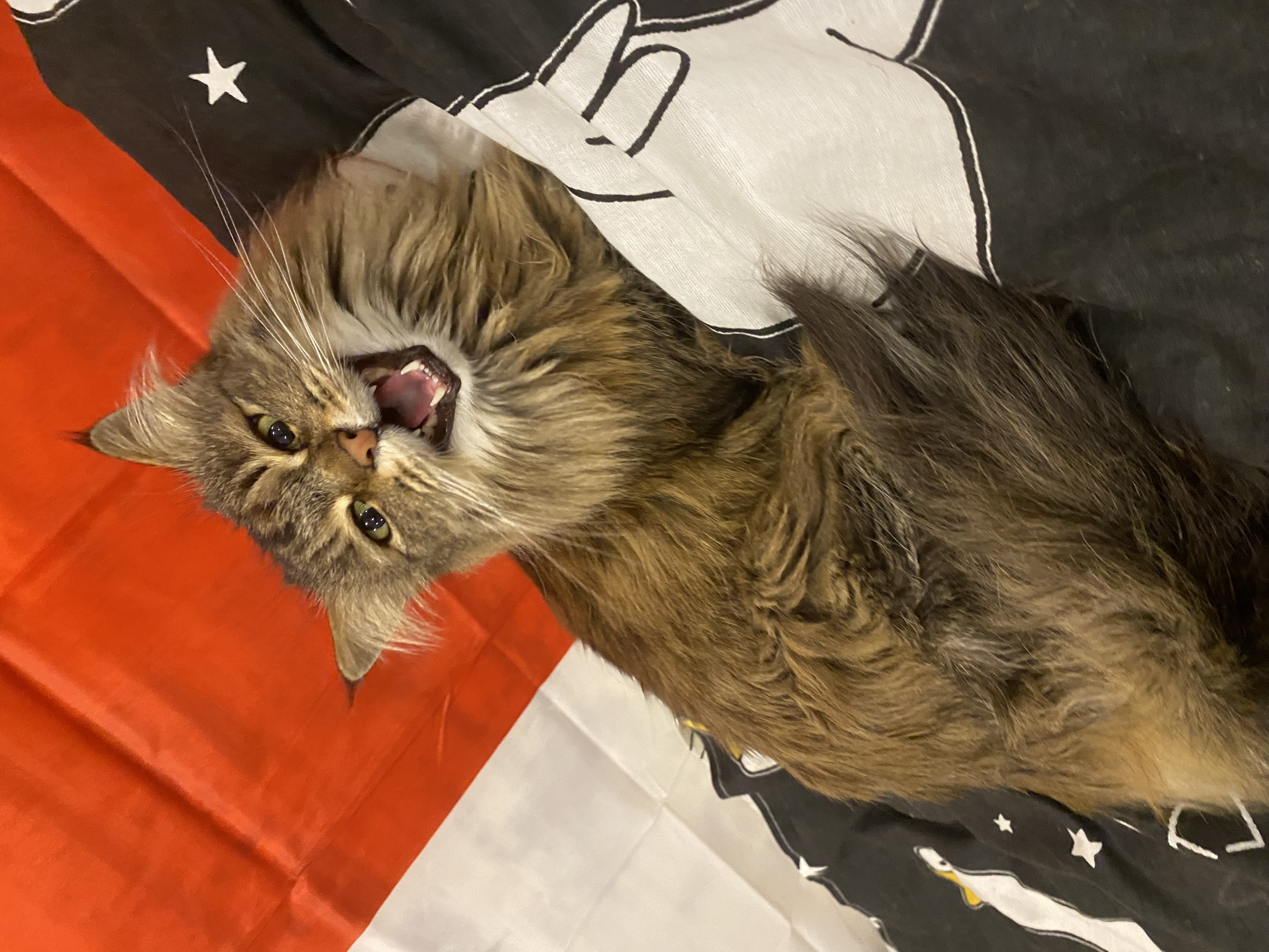 Фото питомца: кошка Софа яростно кричит на фоне итальянского флага