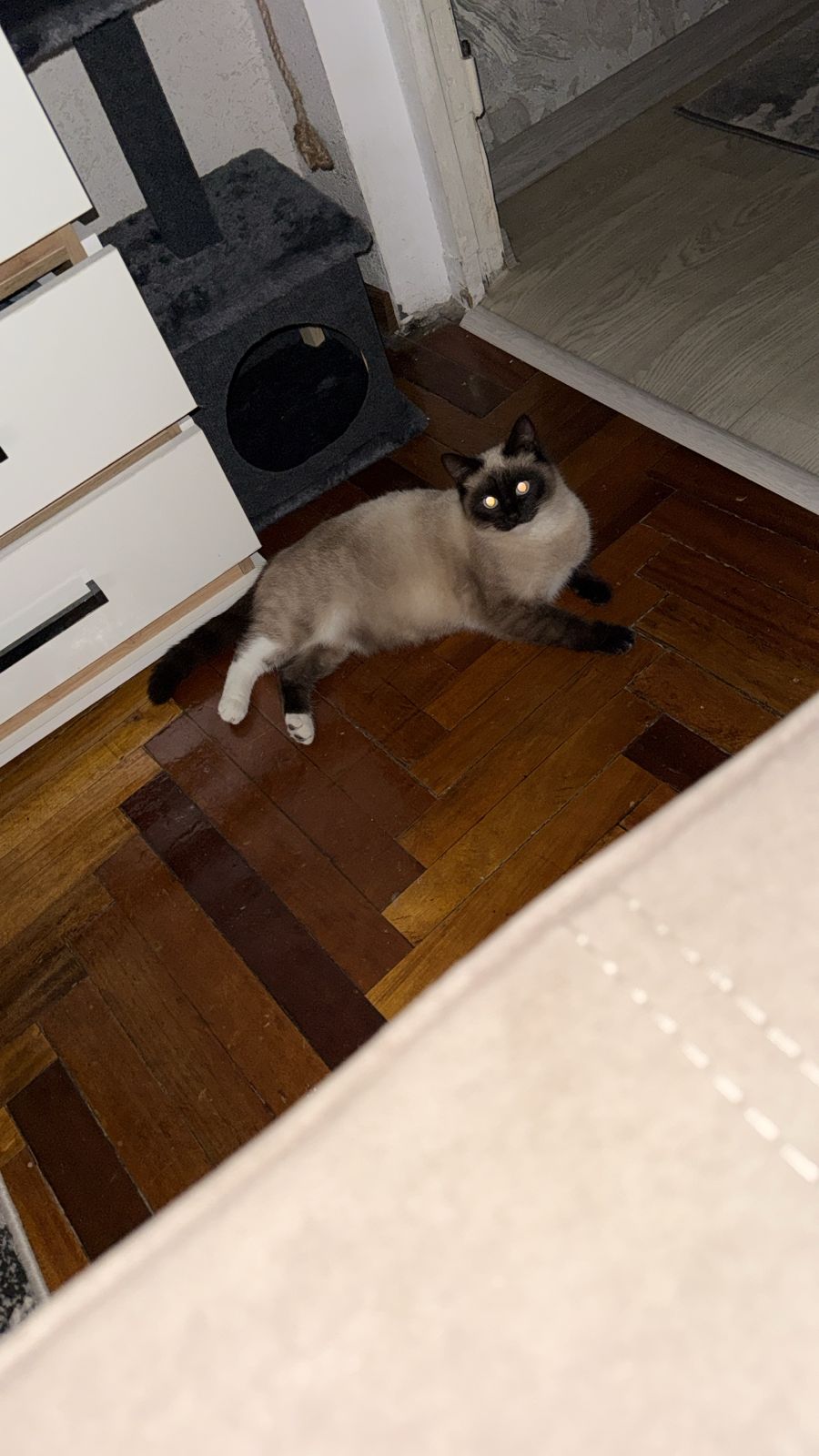 Фото питомца: кошка Соня стратегически защищает свое жилье