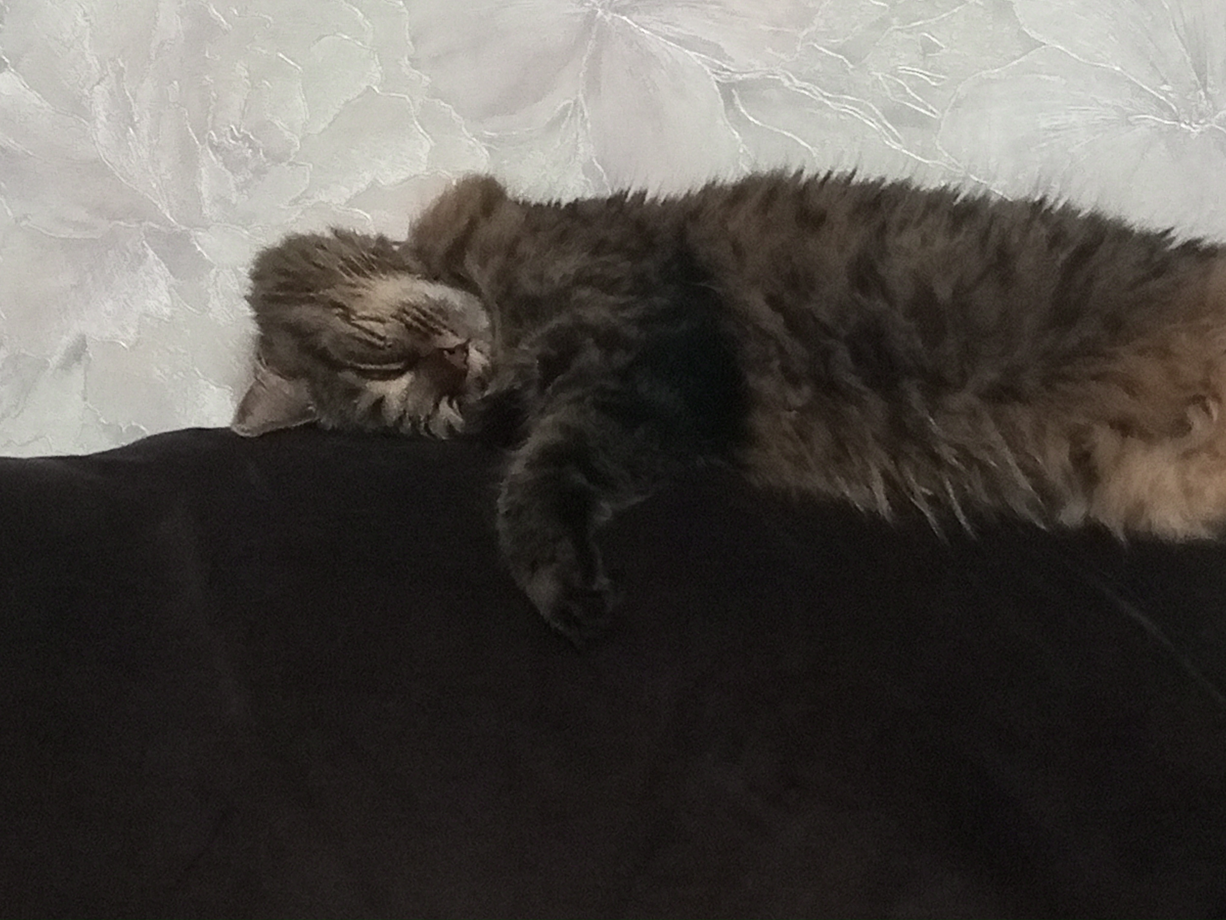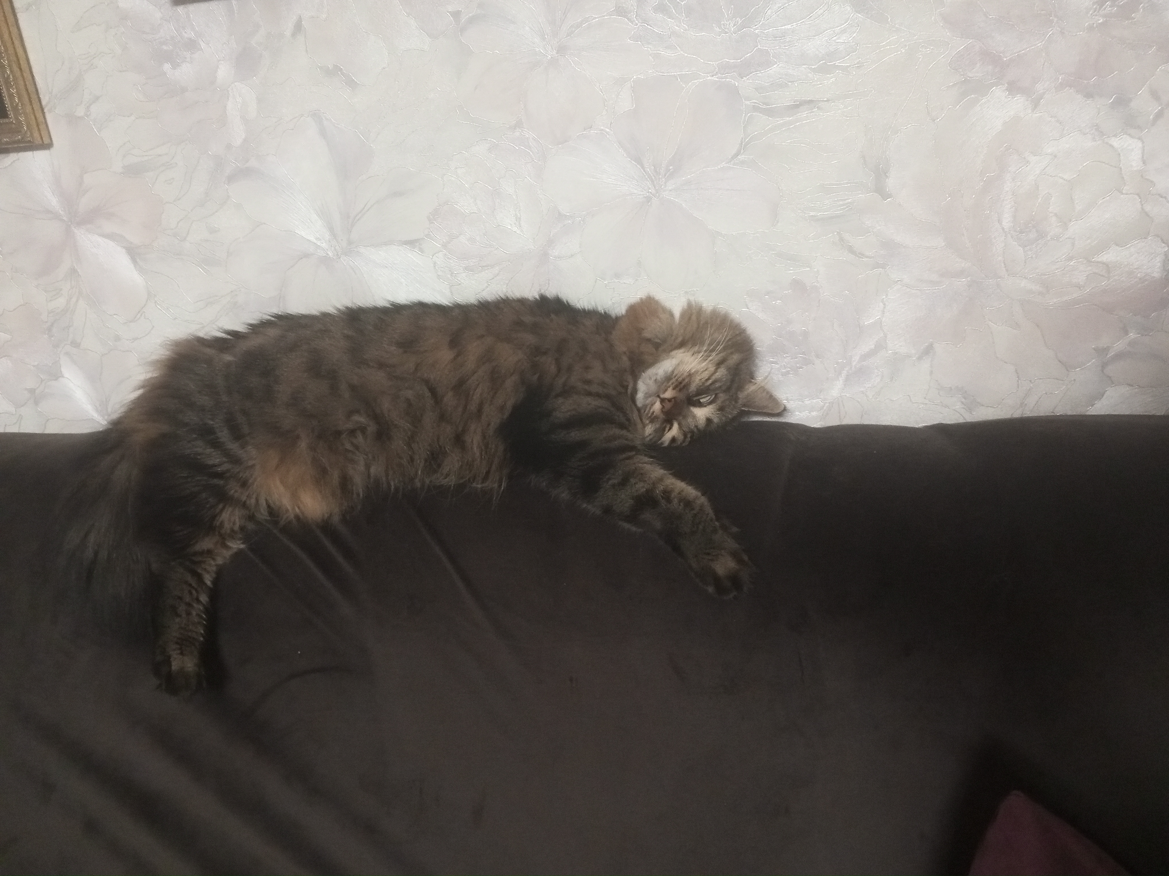 Фото питомца: кошка Таисия лежит на спинке дивана