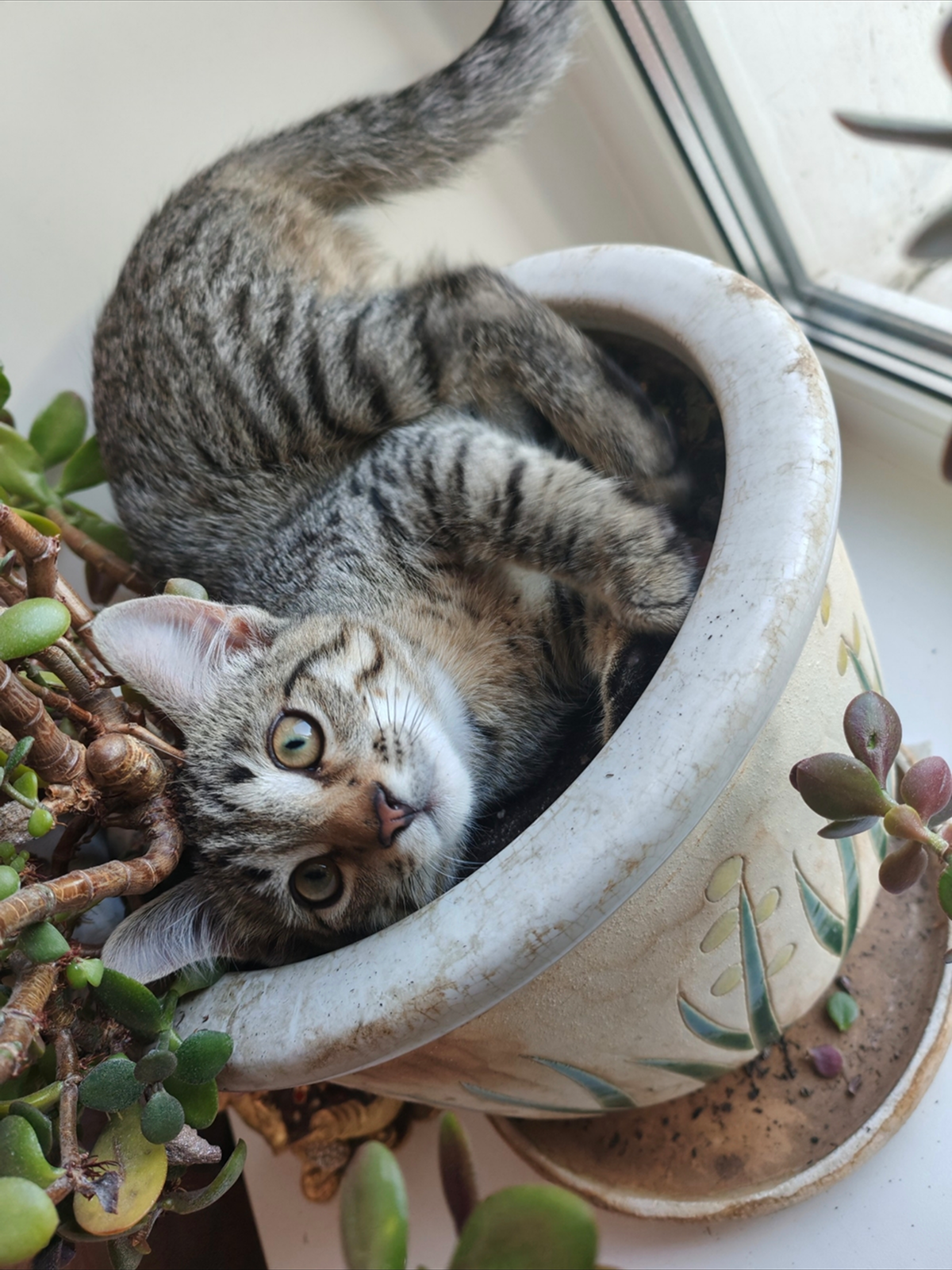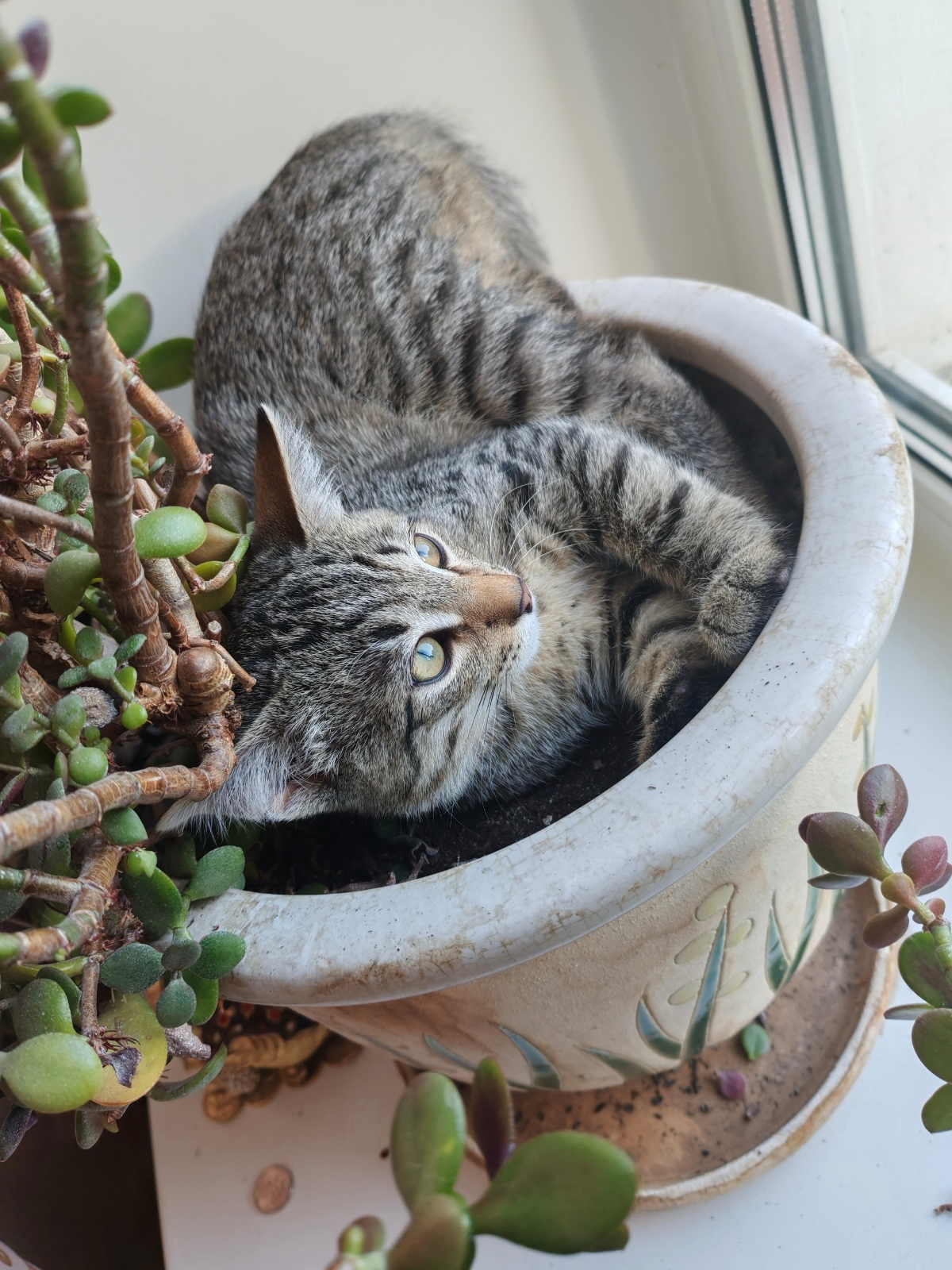 Весна наступила, пойдём в земельке покопаемся! Тёму рыбой не корми — дай в горшке с землёй покопаться!