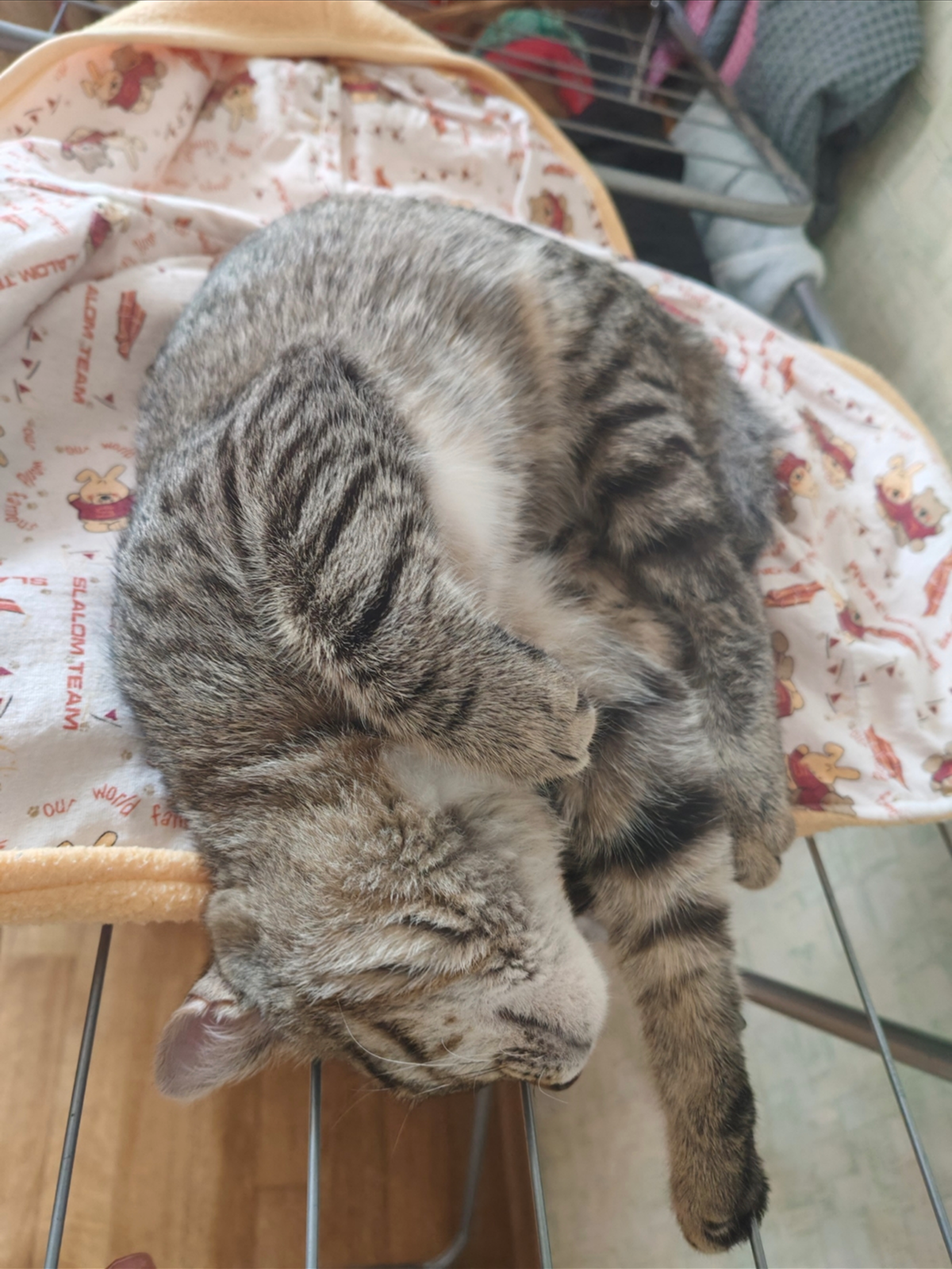 Потише пожалуйста, мне ни в школу ни на работу не надо, я, пожалуй ещё понежусь в кроватке! (а кроватка на сушильной доске, а Ха ха, вот так!)