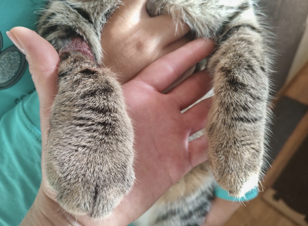 Фото питомца: кот Тема показывает распухшую лапку