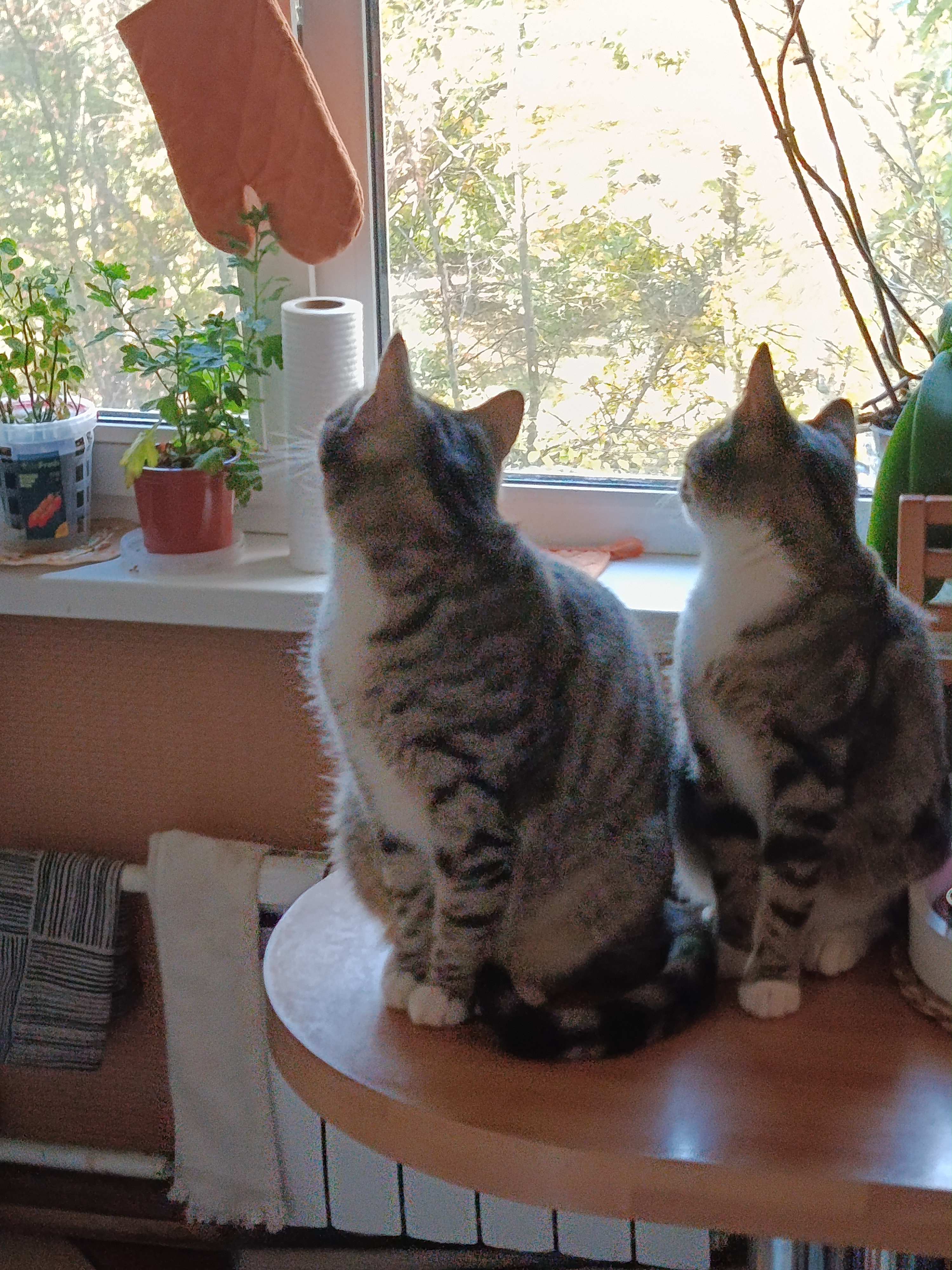 Фото питомца: коты Бибоша и Шери смотрят в окно