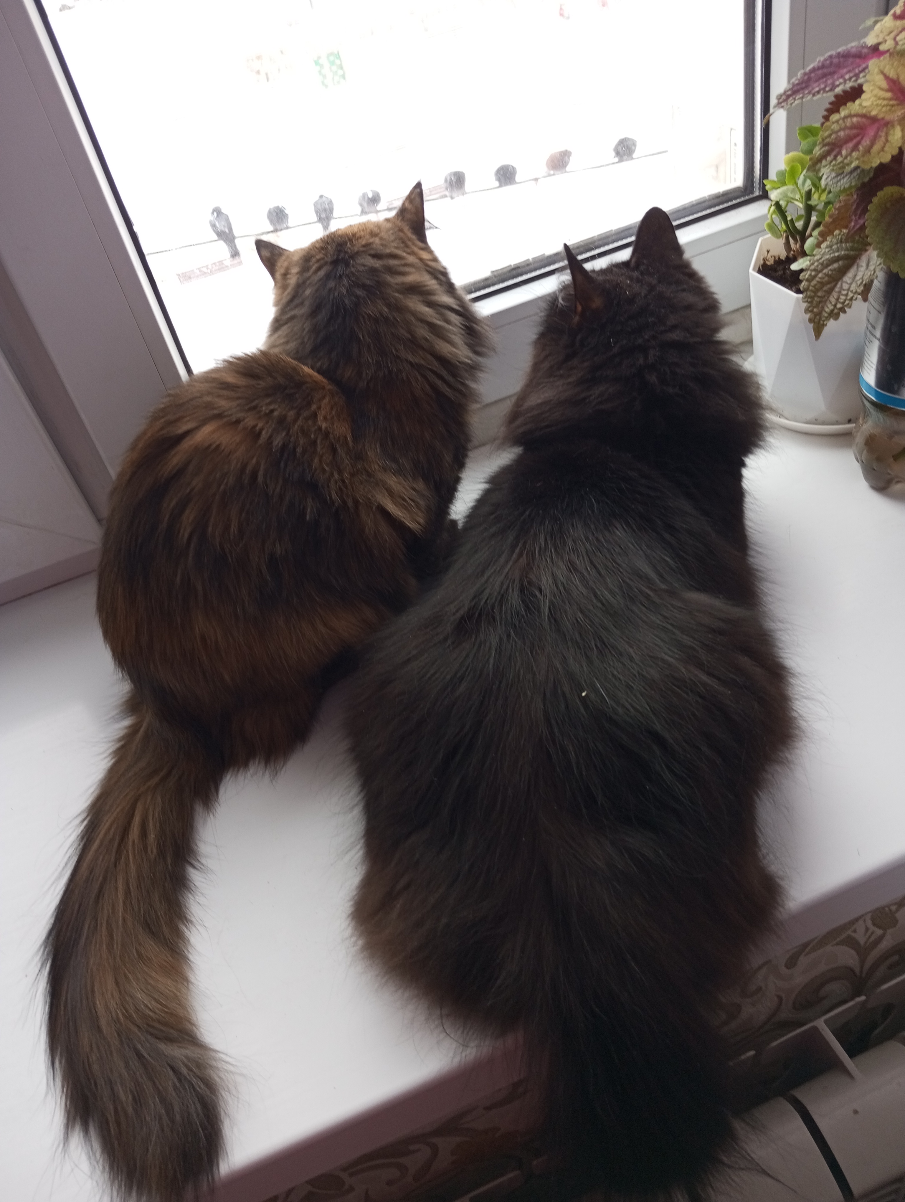 Фото питомцев: кошки Маркиза и Рыся охотятся на голубей