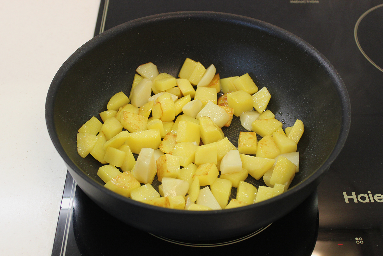 Шаг 2. Сковороду разогрейте на средне-высоком огне. Овощи поочередно обжаривайте, периодически помешивая, по 5—7 минут, до золотистости.