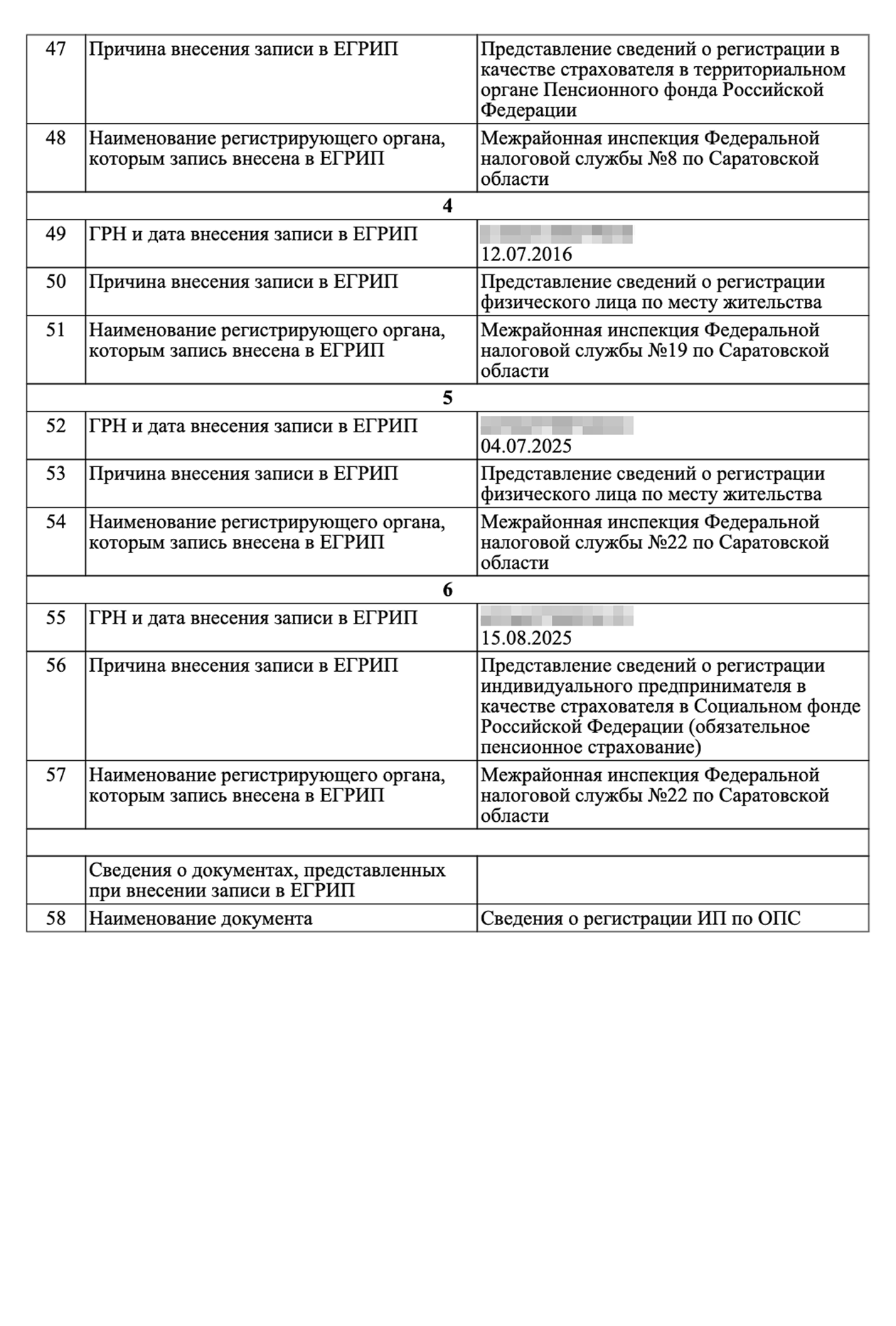 - основной государственный регистрационный номер предпринимателя — ОГРНИП;